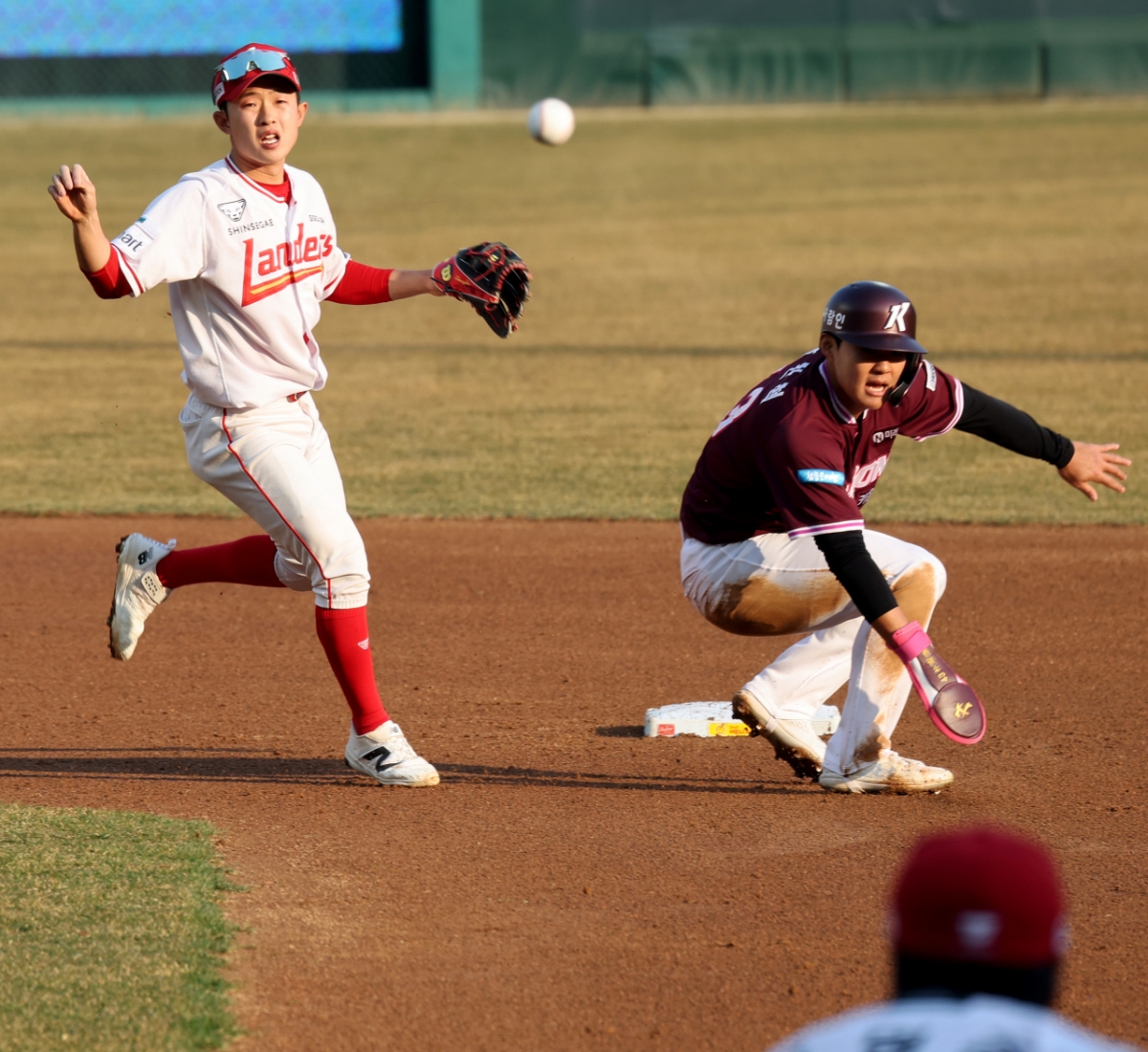 SSG 2루수 홍대인이 22일 랜더스필드에서 열린 1016 프로야구 시범경기 SSG랜더스와 키움히어로즈의 경기 2회초 키움 김동현의 내야땅볼을 잡았다. 그는 1루주자 어준서를 2루포스아웃시킨 후 1루로 송구했다. 이로써 병살을 처리했다.