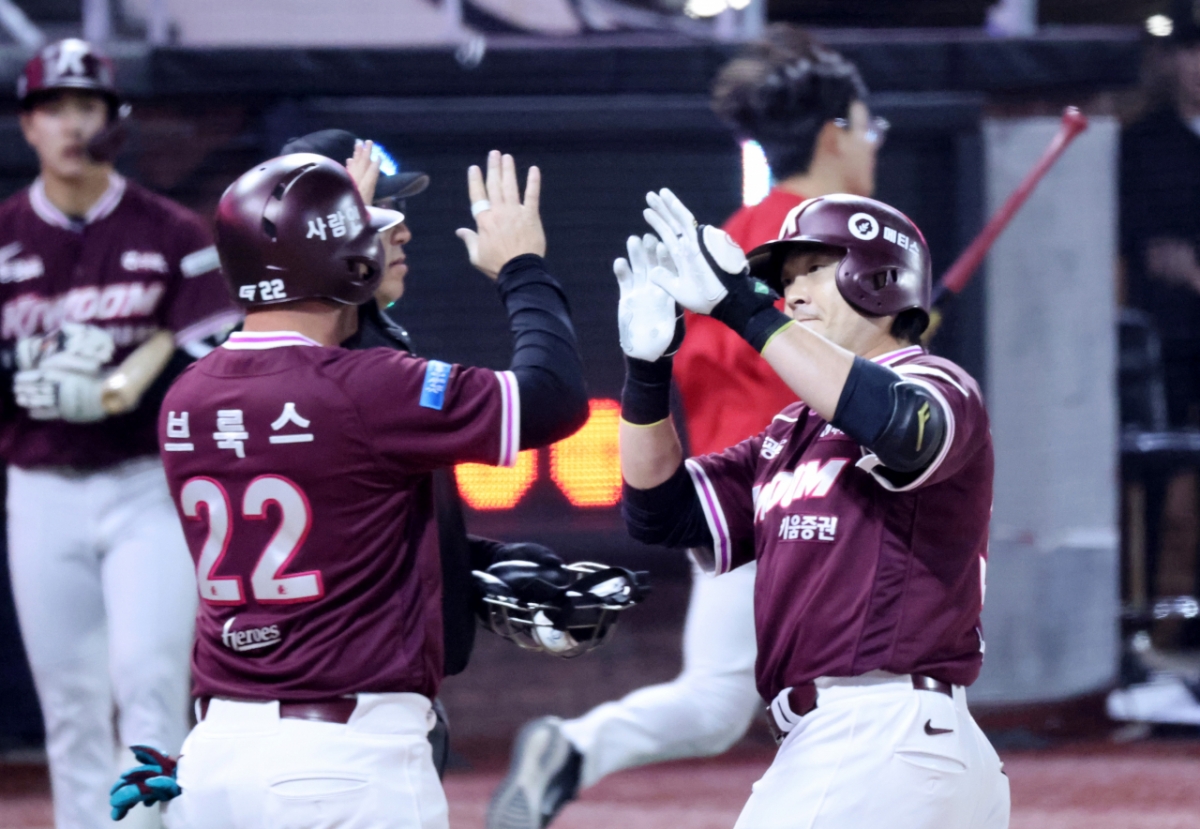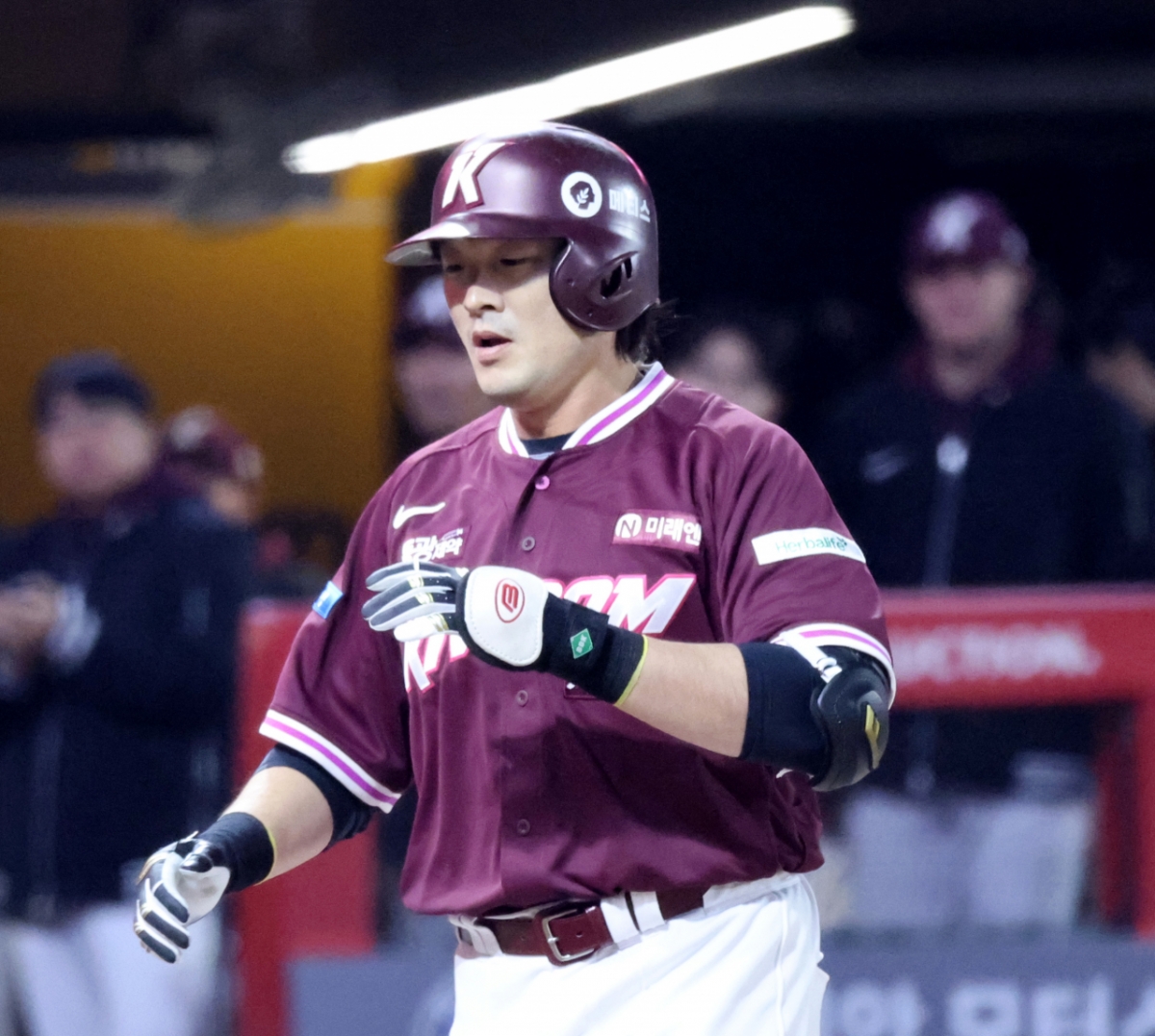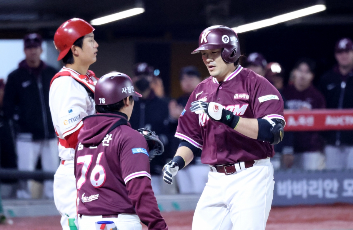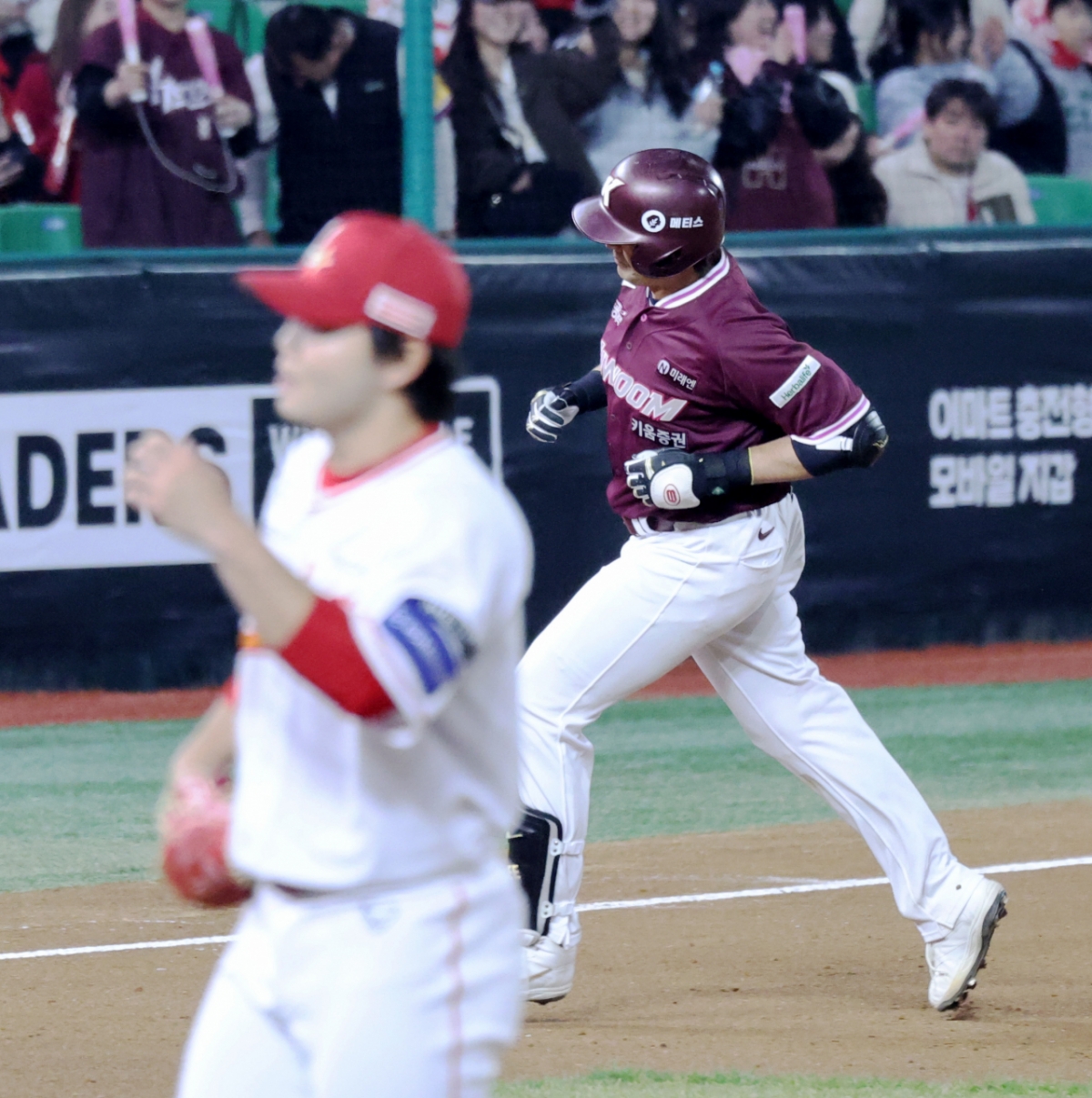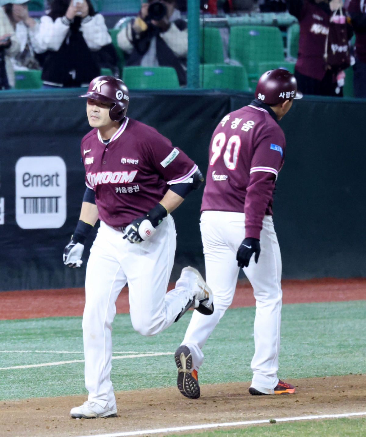 키움 4번타자 이형종이 22일 랜더스필드에서 열린 1016 프로야구 시범경기 SSG랜더스와 키움히어로즈의 경기 9회초 2사 1루에서 2점홈런을 터트린 후 홈인하고 있다. 2026.03.22.