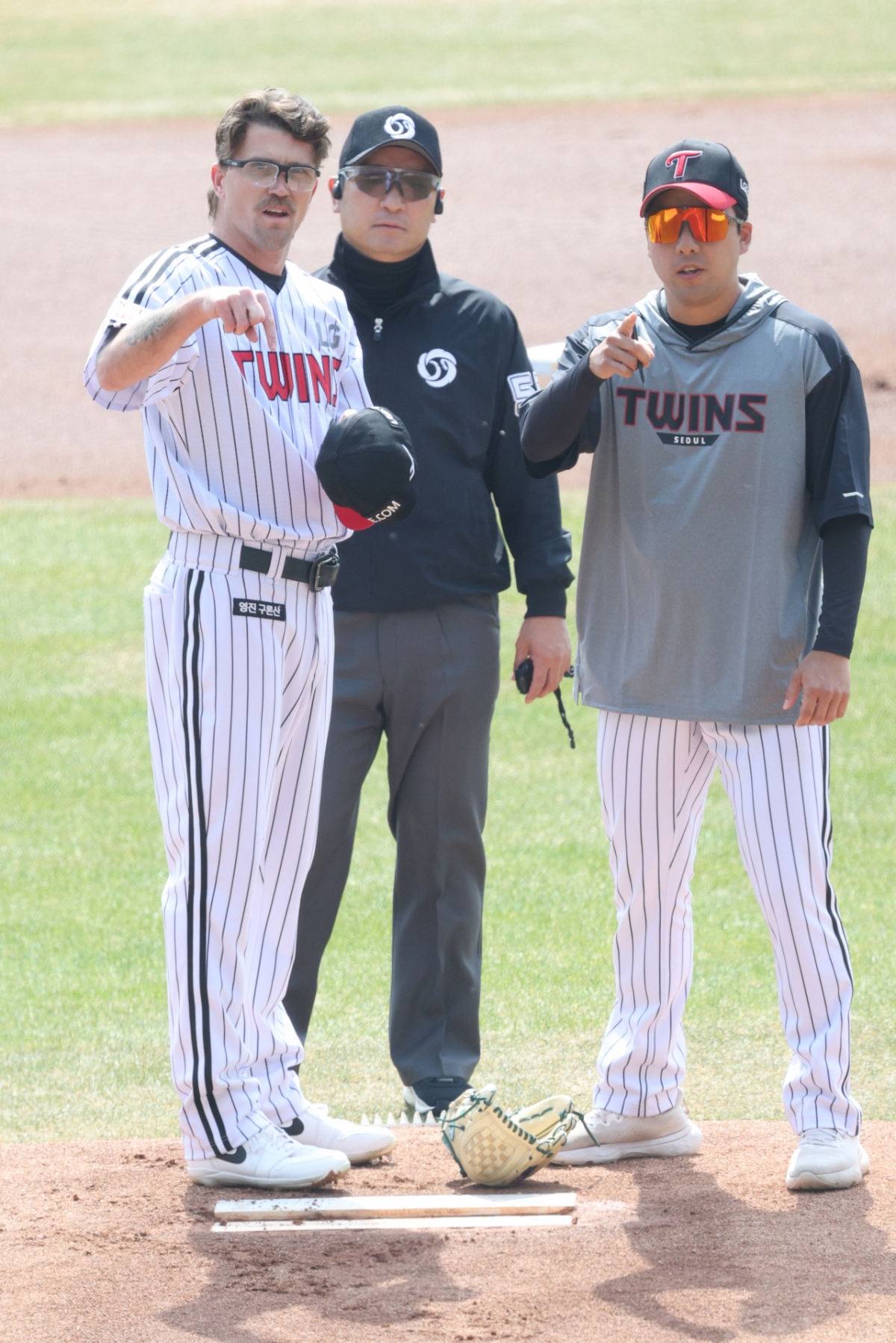 23일 서울 잠실야구장에서 2026 신한 SOL Bank KBO리그 시범경기 LG 트윈스와 키움 히어로즈의 경기가 열렸다. LG 선발 웰스가 피치컴 점검을 했다. 웰스는 점검 후 교체됐다.