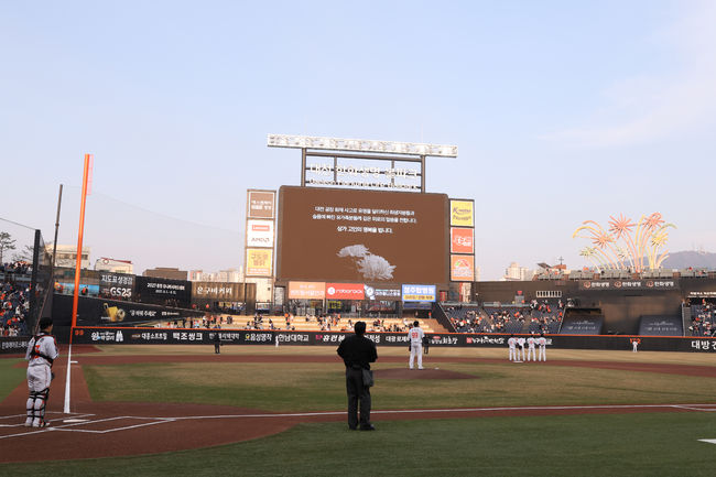 경기 시작 전 전광판에는 '대전 공장 화재 사고로 유명을 달리하신 희생자분들과 슬픔에 빠진 유가족분들께 깊은 위로의 말씀을 전합니다. 삼가 고인의 명복을 빕니다'라는 추모의 메시지가 띄워졌다. 한화와 NC 선수단은 모자를 벗고 고개를 숙였고, 관중석을 가득 메운 팬들 역시 자리에 서서 희생자들의 명복을 빌며 묵념에 동참했다.