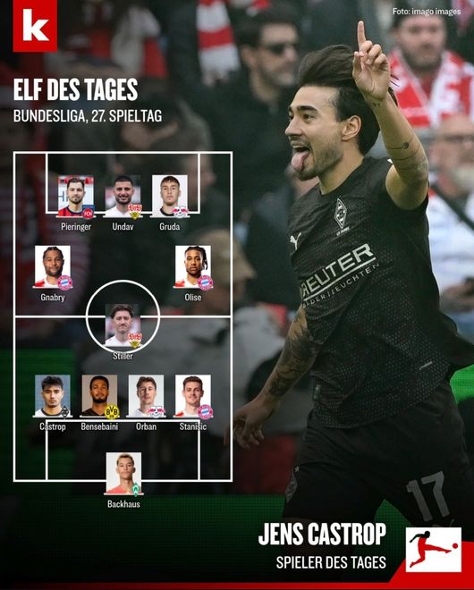 독일 매체들의 평가도 압도적이다. '키커'는 23일 공식 발표를 통해 옌스 카스트로프에게 최고 평점인 1점을 부여하며 라운드 MVP로 선정했다. 양 팀을 통틀어 이 점수를 받은 선수는 카스트로프가 유일했다. 주간 베스트11에도 이름을 올렸다. 더비 출전 선수 중 유일한 선정이었다.