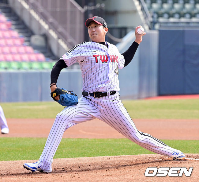 [OSEN=잠실, 한용섭 기자] 프로야구 LG 트윈스 투수 손주영이 키움 히어로즈와 시범경기 최종전에 선발투수로 등판, 팔꿈치 부상에서 회복한 모습을 보여줬다.