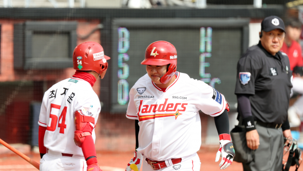 SSG 5번타자 고명준이 24일 랜더스필드에서 열린 1016 프로야구 시범경기 SSG랜더스와 롯데자이언츠 경기 6회말 박세웅을 상대로 우월 솔로홈런을 터트린후 홈인하고 있다. 2026.03.24.