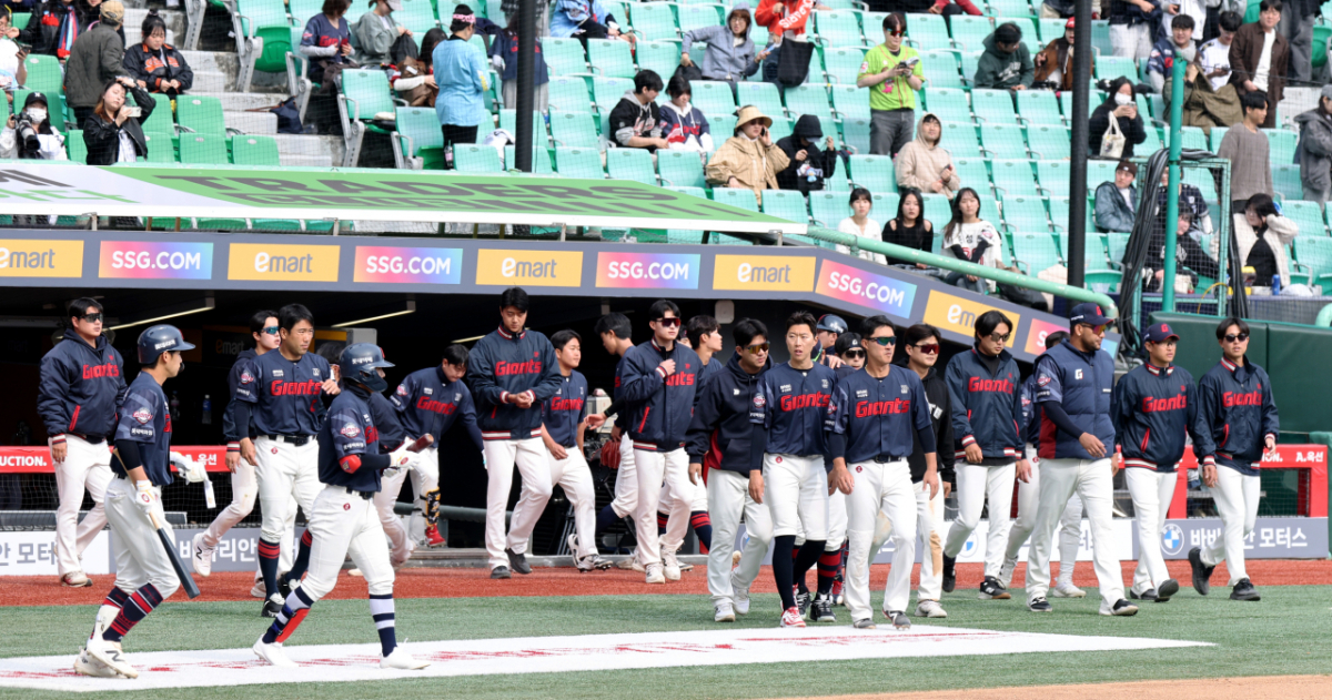 롯데 선수들이 24일 랜더스필드에서 열린 1016 프로야구 시범경기에서 SSG 랜더스에 3-6으로 패배했다. 경기가 끝난 후 롯데 선수들은 그라운드로 나와 팬들에게 인사했다. 이 경기는 2026년 3월 24일에 진행되었다.