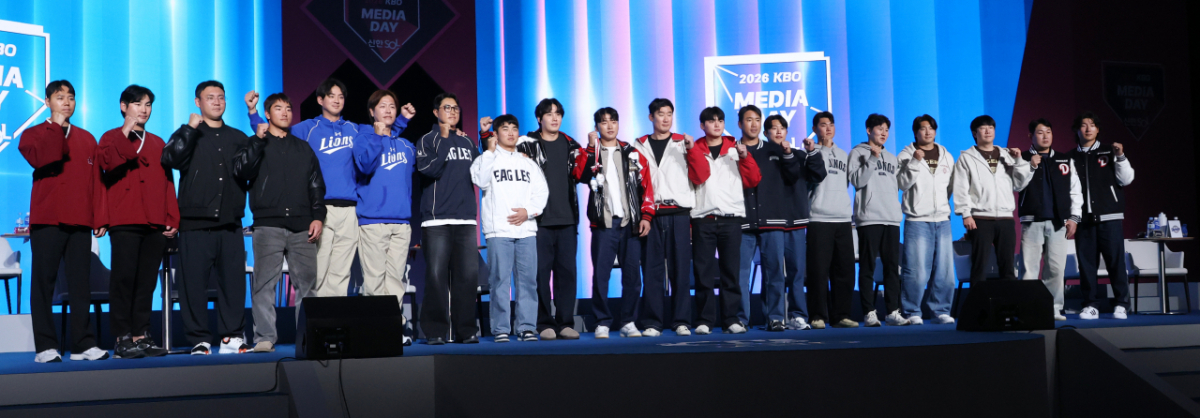 2026 신한 SOL KBO 리그 미디어데이&팬페스트가 26일 서울 잠실 롯데호텔 월드에서 열렸다. 10개 구단 선수들이 포즈를 취했다. 10개 구단 감독과 대표 선수들이 참석했다.