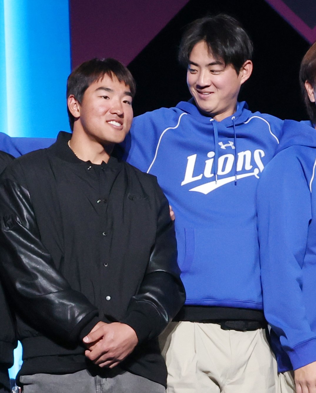 KT 안현민과 삼성 구자욱이 포즈를 취하고 있다.