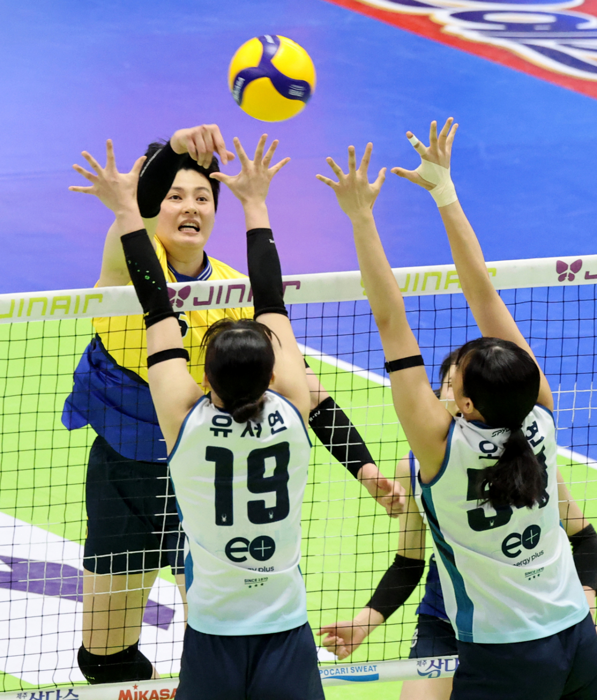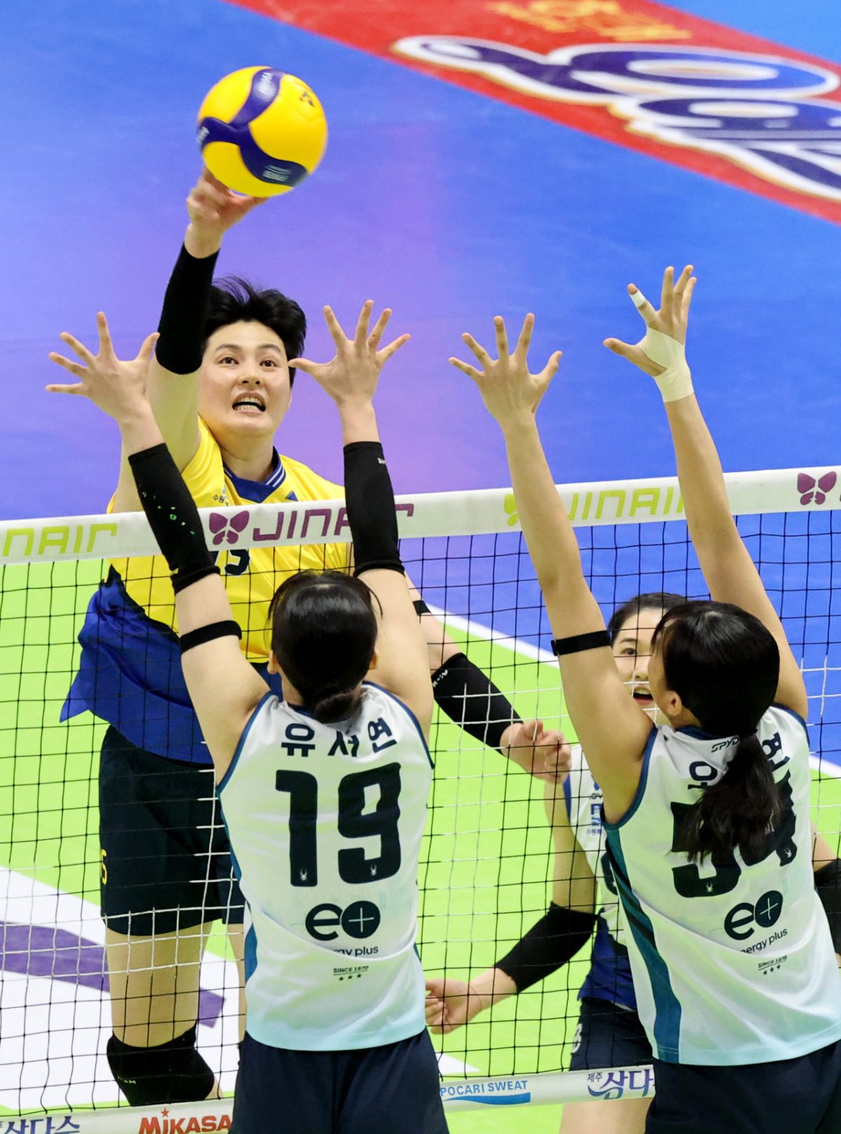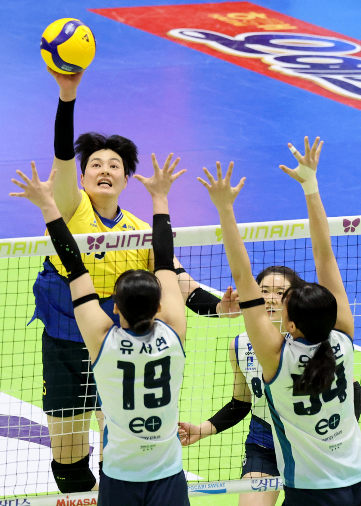 현대 김희진이 26일중수원체육관에서 열린 2025-2026 진에어 V리그 현대건설과 GS켈텍스 플레이오프에서 속공을 시도하고 있다. .2026.03.26.