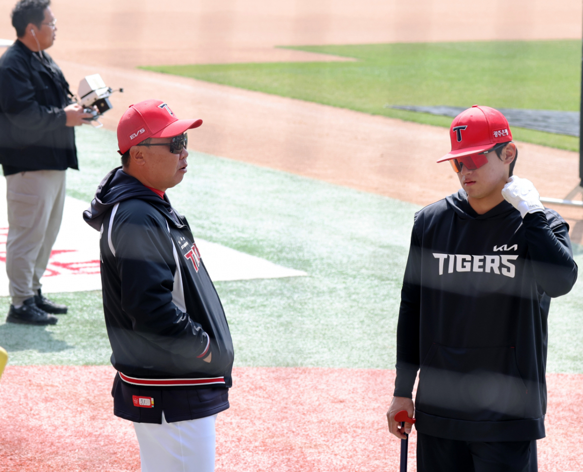 KIA 이범호 감독이 28일 인천SSG랜더스필드에서 열리는 2026 프로야구 SSG랜더스와 KIA타이거즈 개막경기를 앞두고 선수들의 훈련을 지켜봤다. 이범호 감독은 타격훈련을 시작하는 김도영과 이야기를 나눴다. 이 장면은 2026년 3월 28일에 포착됐다. KIA 이범호 감독이 28일 인천SSG랜더스필드에서 열리는 2026 프로야구 SSG랜더스와 KIA타이거즈 개막경기를 앞두고 선수들의 훈련을 지켜보고 있다. 타격훈련을 시작하는 김도영과 이야기를 나누는 이범호 감독 .2026.03.28. 독자들의 PICK! "자습 때 둘이 사라져"...홍서범 아들 불륜, 학생들 잇단 제보 월 700만원 벌어도..."생활비 30만원, 한국인 남편 짠돌이" 8살 차이 장모·사위, 금단의 관계로...회복 불가 외도 사례 "며느리 불륜" 공방에...신혼집에 몰카 설치한 류중일 전 사돈