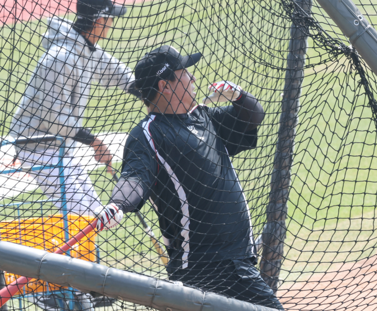 KT 김현수가 타격 훈련을 하고 있다.