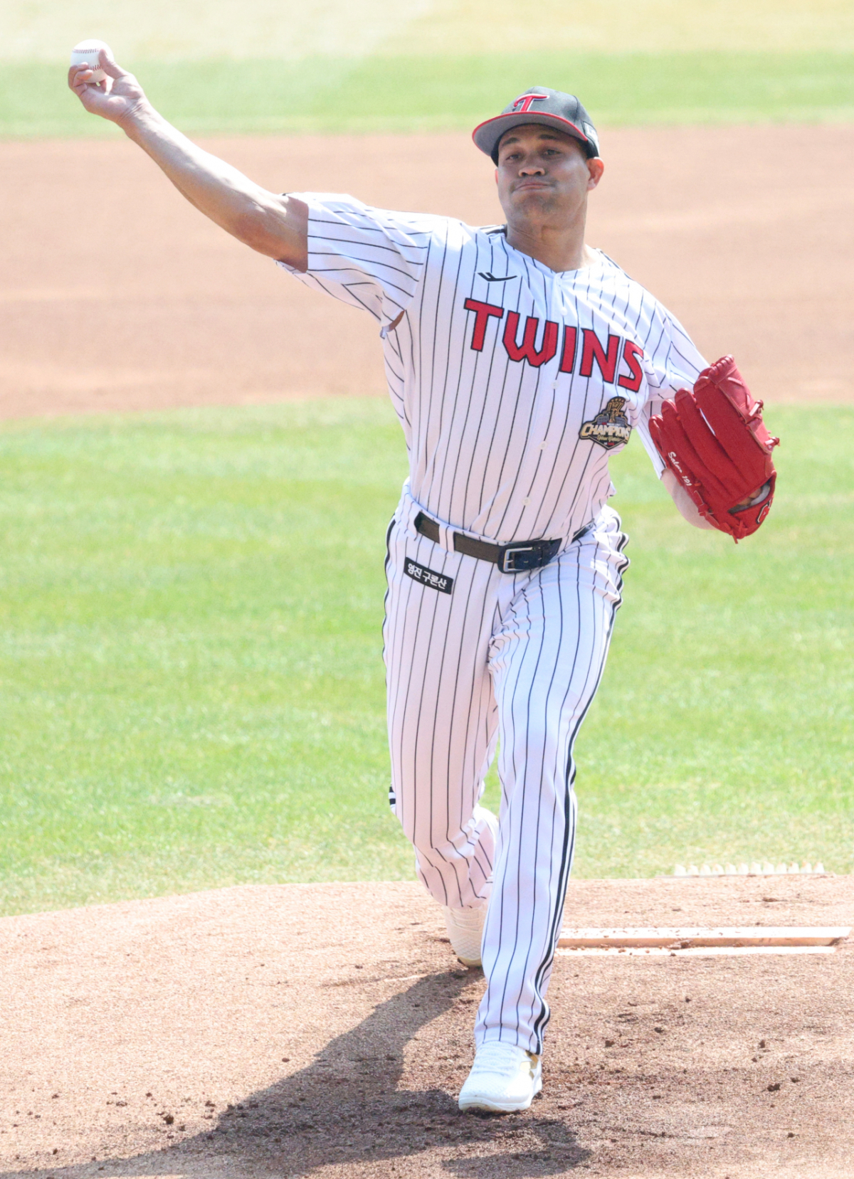2026 신한 SOL Bank KBO리그 공식 개막전 LG 트윈스와 KT 위즈의 경기가 28일 서울 잠실야구장에서 열렸다. LG 선발 치리노스가 역투했다. 기사에 따르면 치리노스는 '영점이 안 잡혔어'라고 말했다.
