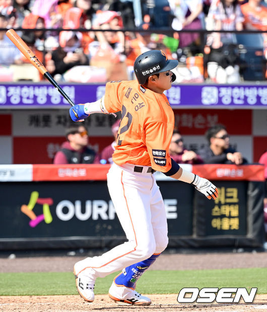 28일 대전 한화생명볼파크에서 2026 신한 SOL KBO리그 개막전 한화 이글스와 키움 히어로즈의 경기가 열렸다. 한화 채은성은 4회말 1사 주자 없는 상황에서 달아나는 좌월 솔로포를 날렸다. 이 경기는 한화의 18년 만의 홈 개막전 승리를 향한 솔로포였다.
