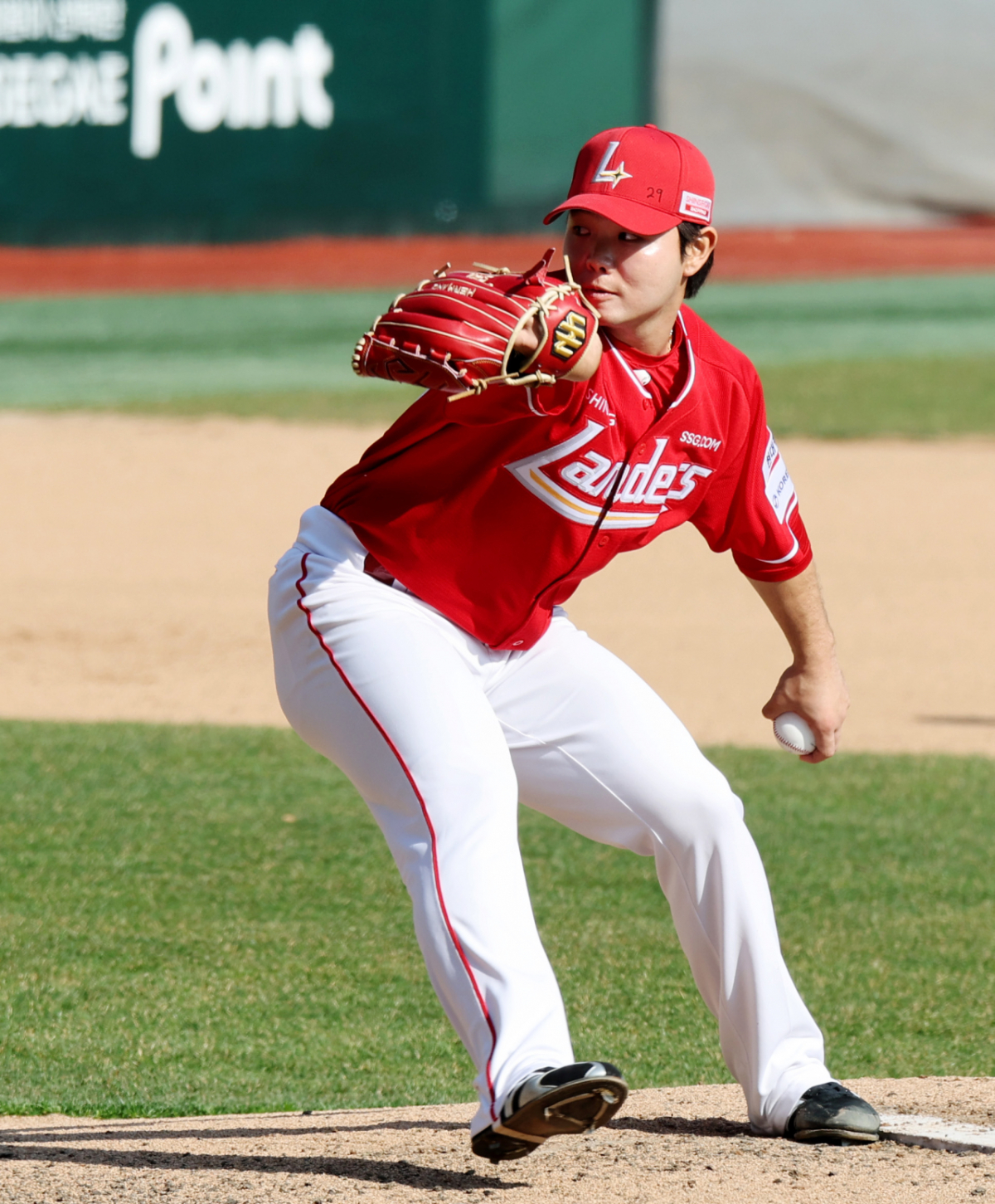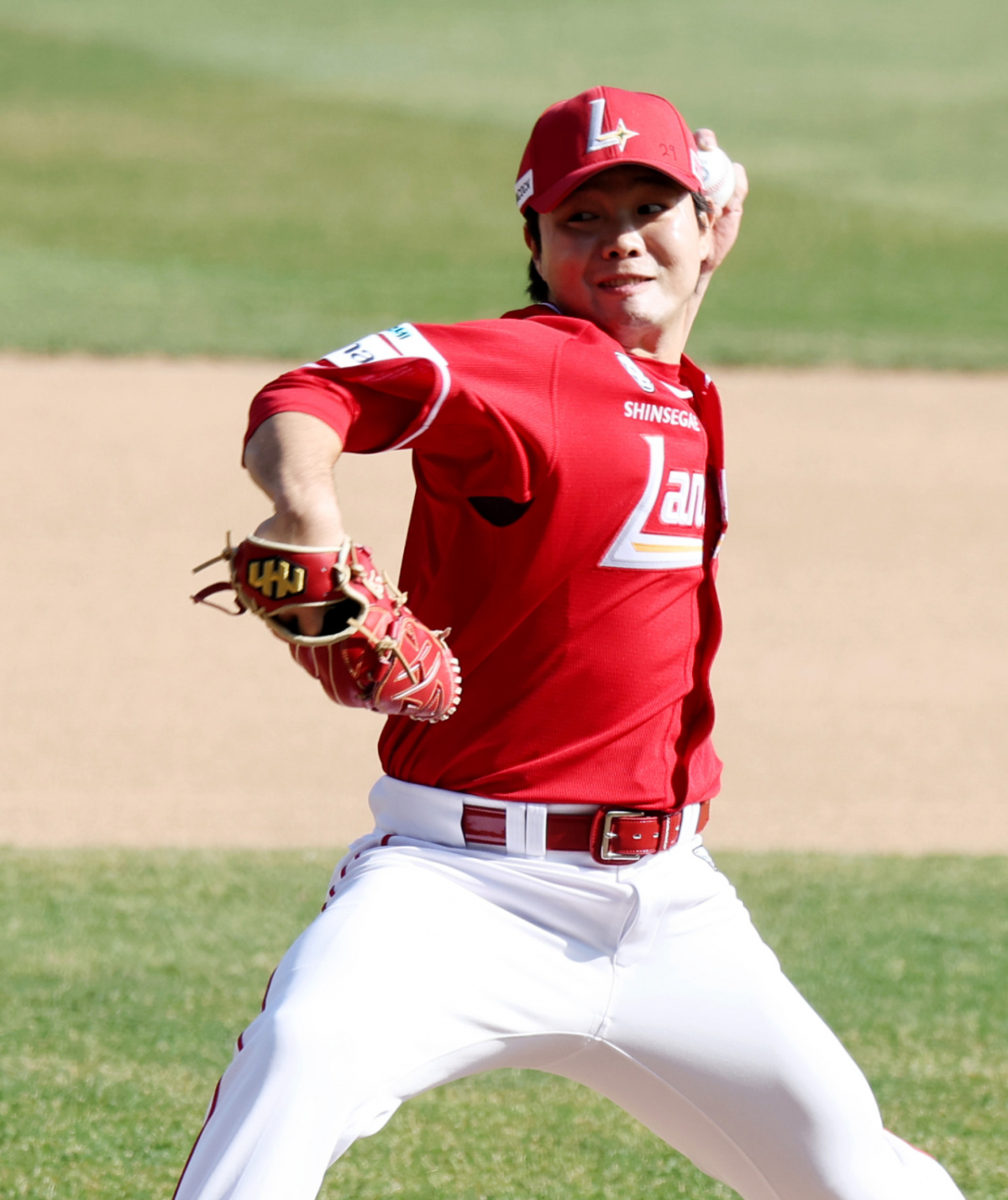 랜더스 좌완투수 박시후가 28일 인천SSG랜더스필드에서 열린 2026 프로야구 SSG랜더스와 KIA타이거즈 개막경기에서 역투했다. 박시후는 6회초 무실점 투구를 펼쳤다. 이 경기는 2026년 3월 28일에 진행됐다.