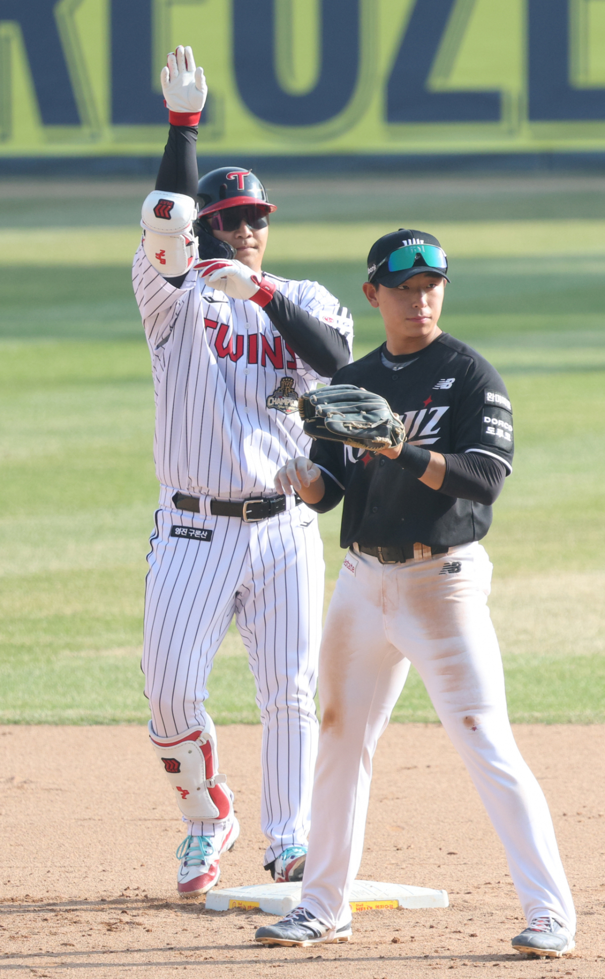 2026 신한 SOL Bank KBO리그 공식 개막전 LG 트윈스와 KT 위즈의 경기가 28일 서울 잠실야구장에서 열렸다. LG 문보경은 7회말 무사 1루 상황에서 1타점 우익선상 2루타를 기록했다. 문보경은 출루 후 힘찬 세리머니를 펼쳤다. 2026 신한 SOL Bank KBO리그 공식 개막전 LG 트윈스 대 KT 위즈 경기가 28일 서울 잠실야구장에서 열렸다. LG 문보경이 7회말 무사 1루에서 1타점 우익선상 2루타를 날리고 출루한 후 세리머니를 하고 있다. 독자들의 PICK! "자습 때 둘이 사라져"...홍서범 아들 불륜, 학생들 잇단 제보 도끼♥이하이 열애설에 '절친' 슬리피 "결혼 가자" 월 700만원 벌어도..."생활비 30만원, 한국인 남편 짠돌이" 8살 차이 장모·사위, 금단의 관계로...회복 불가 외도 사례