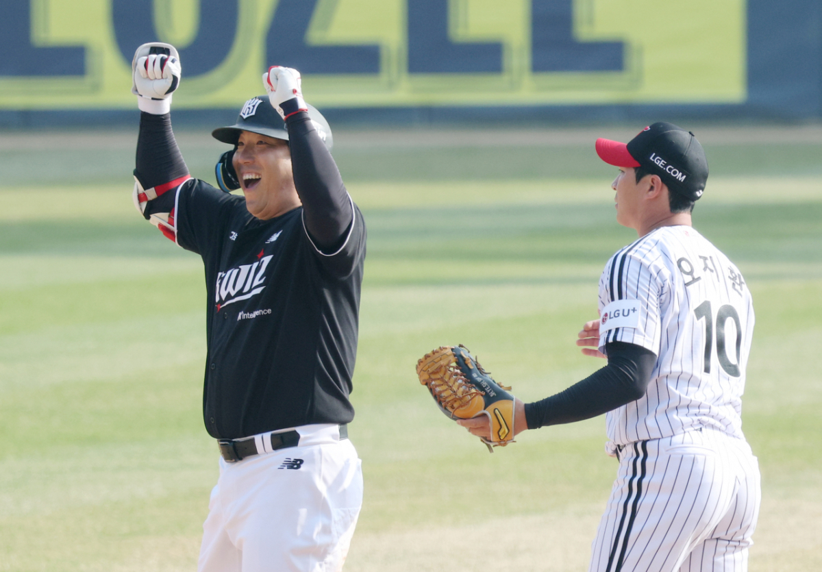 친정팀 LG의 전 주장 오지환의 표정이 일그러지자 김현수의 미음도 아렸다. 그러나 환호를 스킵할 순 없는 노릇이었다.