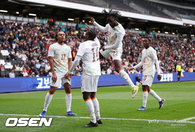 전반 23분 코트디부아르도 좋은 찬스를 잡았다. 게상이 돌파하는 과정에서 김민재가 파울을 범했고 박스 앞 정면에서 프리킥 찬스를 잡았다. 키커로 나선 아딩그라가 슈팅했으나 수비벽이 막아냈다. 직후 하이드레이션 브레이크가 주어졌다.