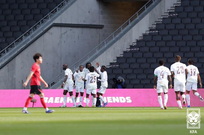 한국이 실점을 허용했다. 전반 35분 조유민이 왼쪽 측면 돌파를 허용했고 정확한 패스를 넘겨받은 게상이 침착한 오른발 슈팅으로 골망을 갈랐다.