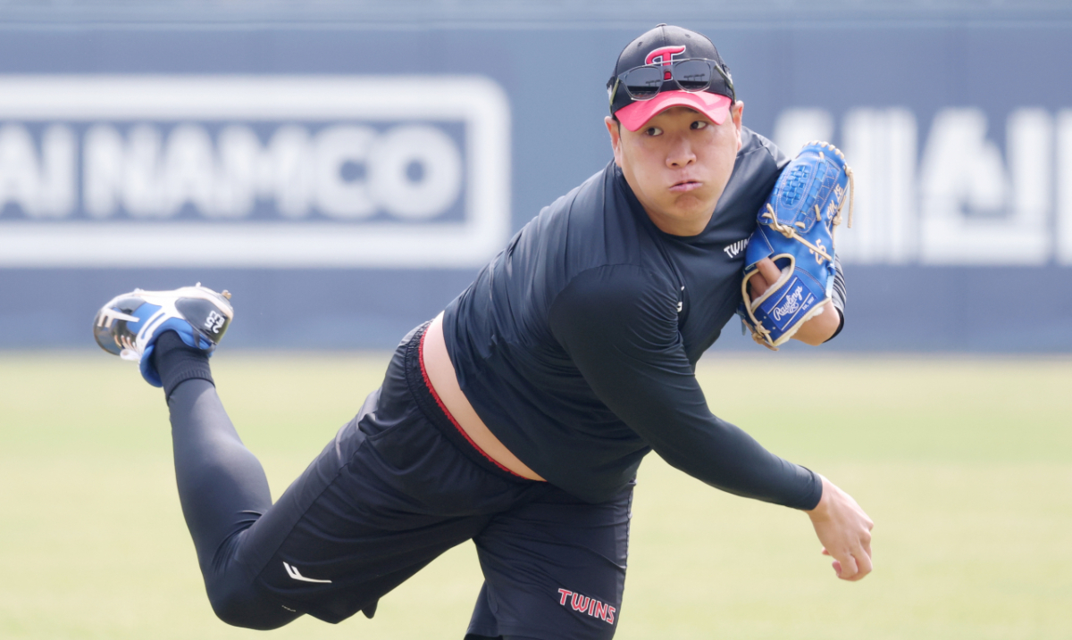 2026 신한 SOL Bank KBO리그 LG 트윈스와 KT 위즈의 경기가 29일 서울 잠실야구장에서 열렸다. LG 배재준은 외야에서 피칭 훈련을 했다. 배재준은 '이글이글'한 모습을 보였다.