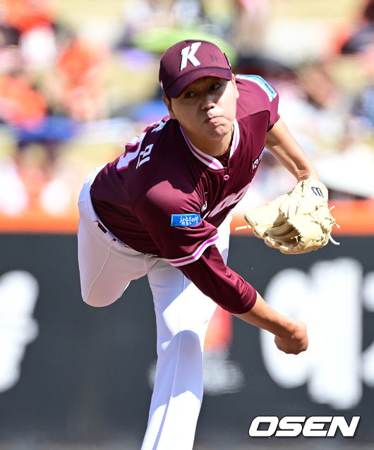 29일 대전 한화생명볼파크에서 2026 신한 SOL KBO리그 한화 이글스와 키움 히어로즈의 경기가 열렸다. 홈팀 한화는 왕옌청을, 방문팀 키움은 하영민을 선발로 내세웠다. 1회말 키움 선발 하영민이 힘차게 공을 뿌렸다.