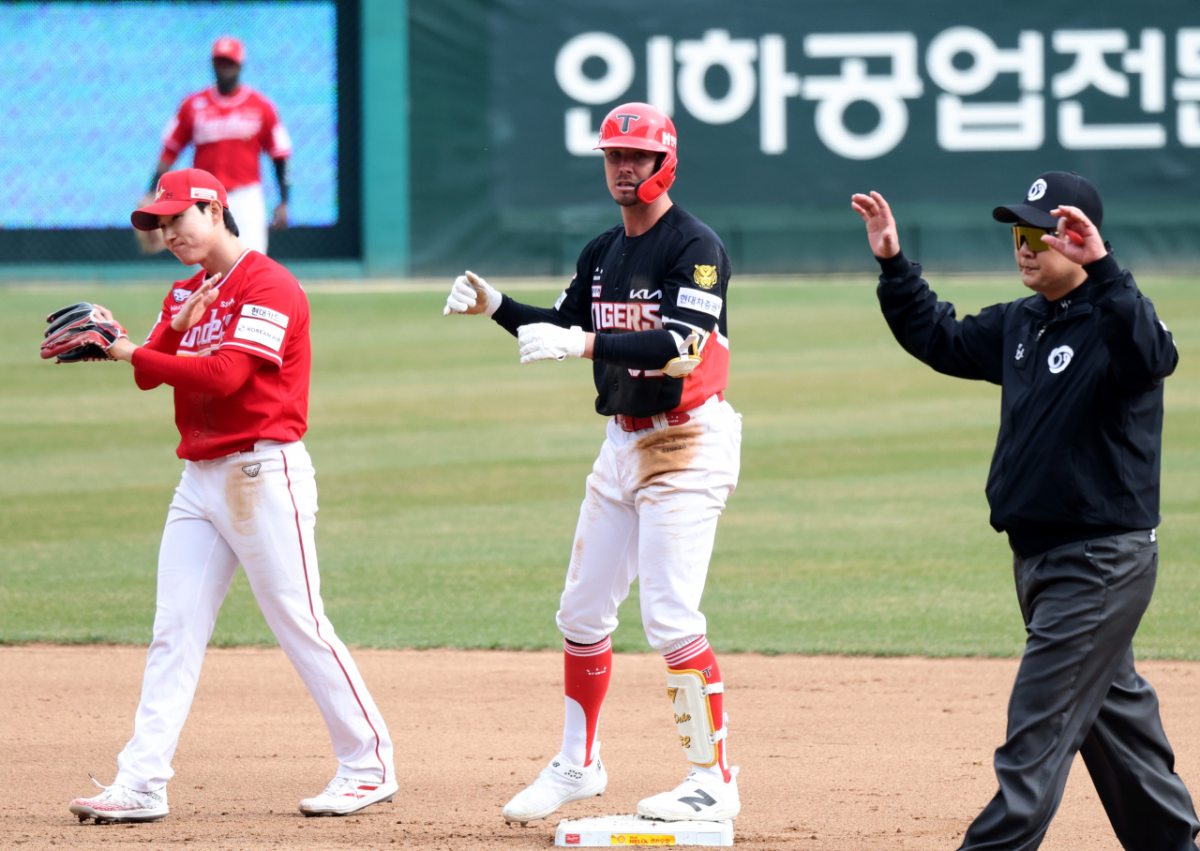 기아 9번타자 데릴이 29일 인천SSG랜더스필드에서 열리는 2026 프로야구 SSG랜더스와 KIA타이거즈 경기 4회초 2사 2루에서 1타점 2루타를 터트린 후 2루에서 세이프되고 있다.. 2026.03.29. 몸비틀며 오른손빼고 왼손으로 베이스 터치하는 데릴 독자들의 PICK! 홍서범·조갑경, '아들 불륜' 사과…"양육비·위자료 빨리 주도록 할 것" 화사, 속옷이 다 보여...과감한 드레스 연출에 '깜짝' 월 700만원 벌어도..."생활비 30만원, 한국인 남편 짠돌이" 이하이 "도끼, 하나뿐인 내 남자" 열애 인정…"두 사람 지금 미국에"