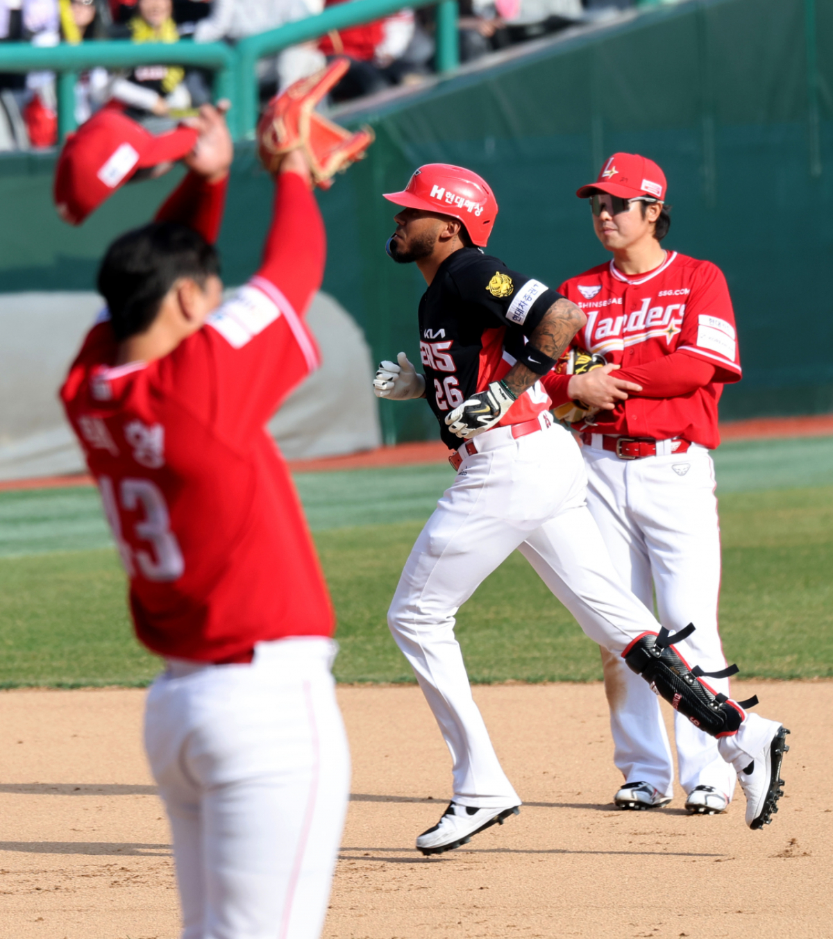 기아의 2번 타자 카스트로가 29일 인천SSG랜더스필드에서 열린 SSG랜더스와 KIA타이거즈 경기 7회초 2사 1루 상황에서 김택현을 상대로 우월 2점 홈런을 터트렸다. 카스트로는 홈런을 친 후 홈으로 들어왔다. 이 홈런은 경기의 추격 투런 홈런이었다. 기아 2번타자 카스트로가 29일 인천SSG랜더스필드에서 열리는 2026 프로야구 SSG랜더스와 KIA타이거즈 경기 7회초 2사 1루에서 김택현을 상대로 우월2점홈런을 터트린 후 홈인하고고 있다.. 2026.03.29. 독자들의 PICK! 홍서범 전 며느리 "아들 외도, 대중에 사과? 저에게 하시라" 분노 월 700만원 벌어도..."생활비 30만원, 한국인 남편 짠돌이" 화사, 속옷이 다 보여...과감한 드레스 연출에 '깜짝' 이하이 "도끼, 하나뿐인 내 남자" 열애 인정…"두 사람 지금 미국에"