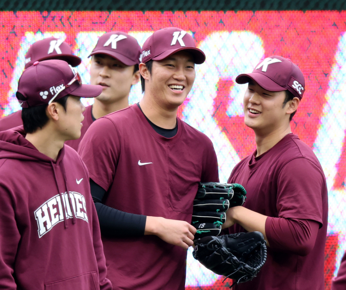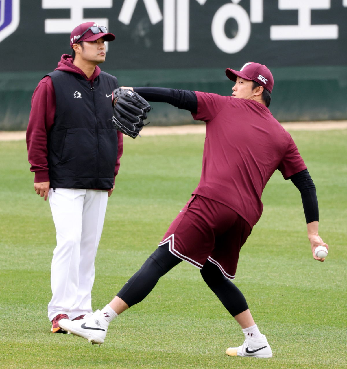 키움 에이스 안우진이 31일 인천SSG랜더스필드에서 열리는 2026 프로야구 SSG랜더스와 키움히어로즈의 경기에 앞서 캐치볼로 몸을 풀고 있다. 부상에서 회복중인 안우진이 1군과 동행하고 있다. 2026.03.31.