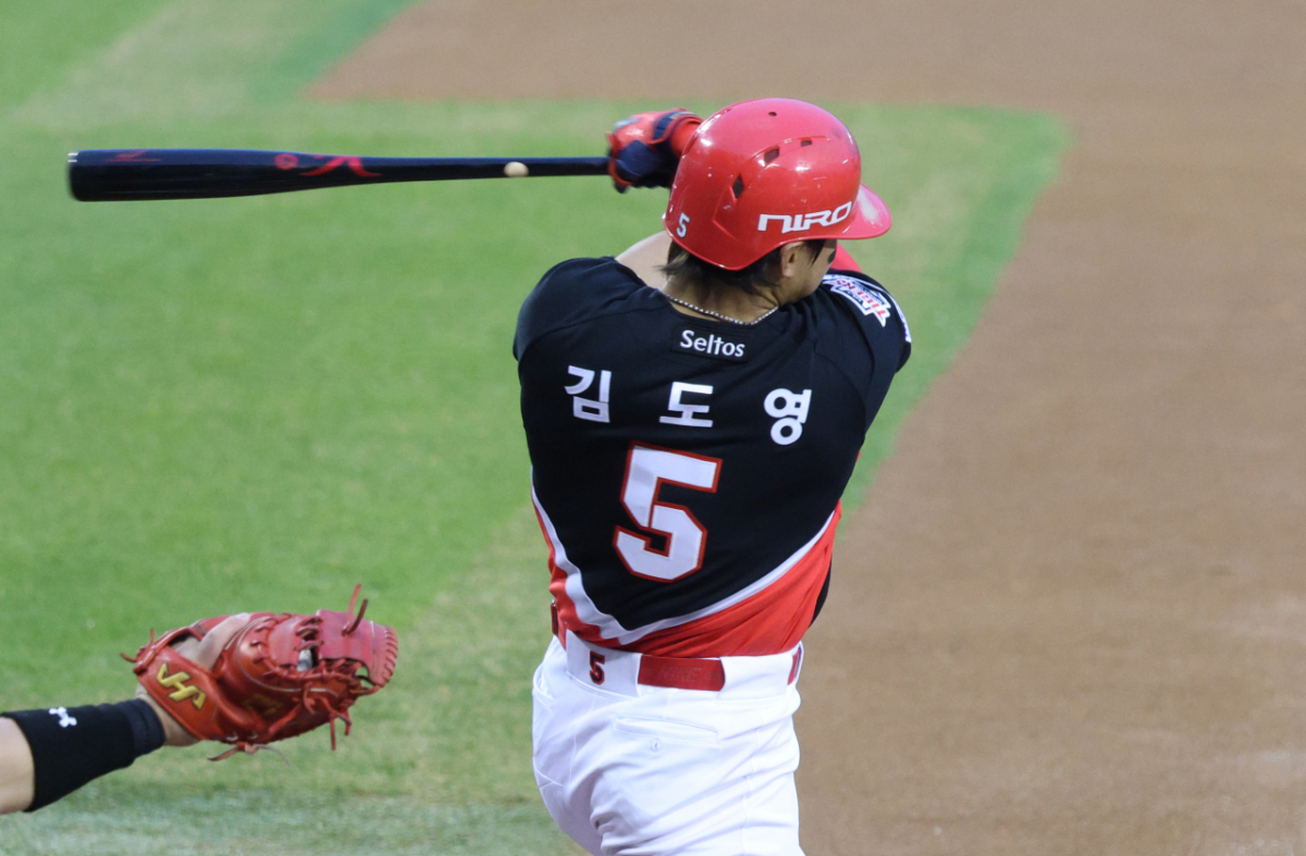 KIA 김도영이 2회초 2사 2루에서 좌월 2점 홈런을 날리고 있다.