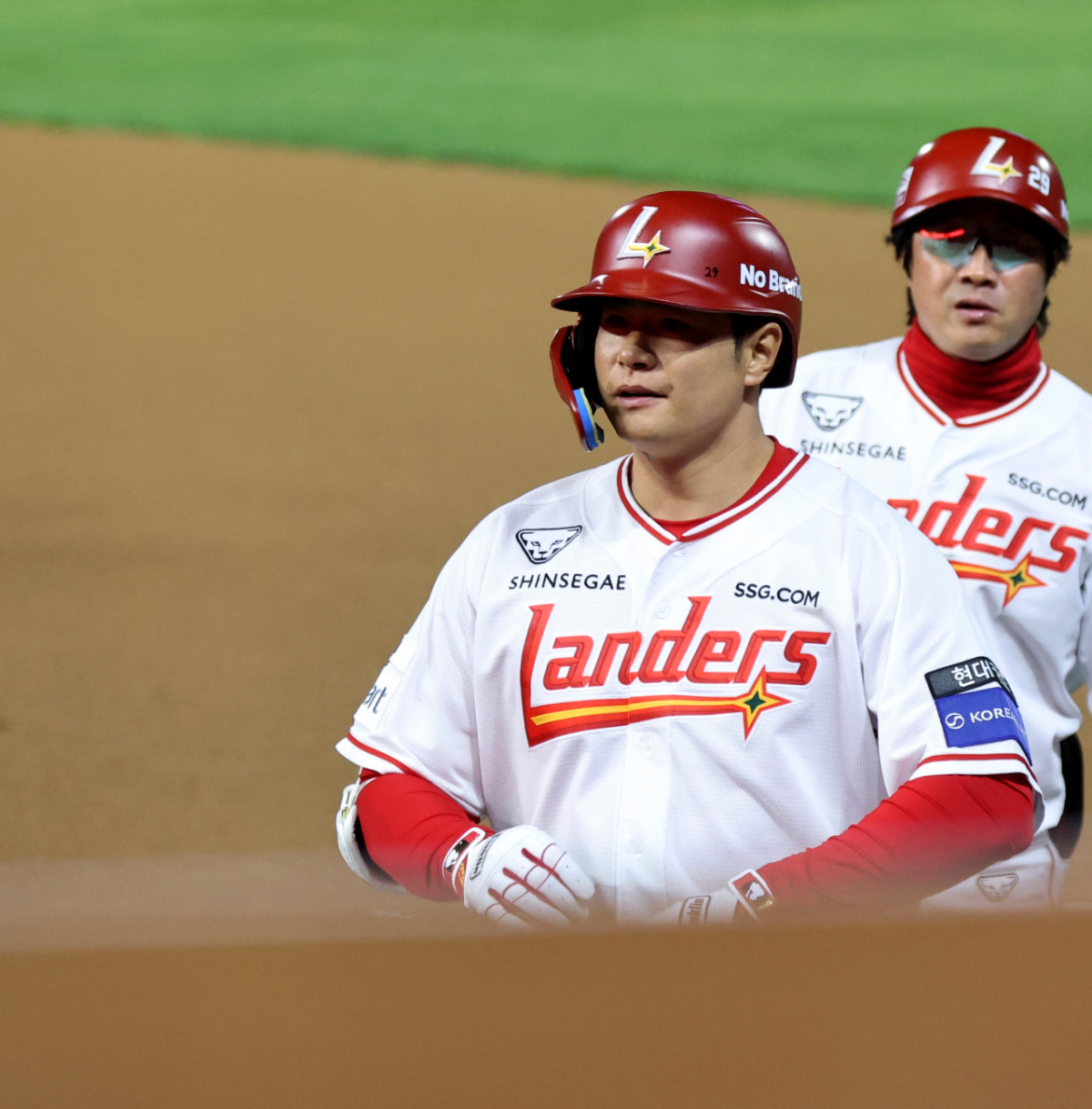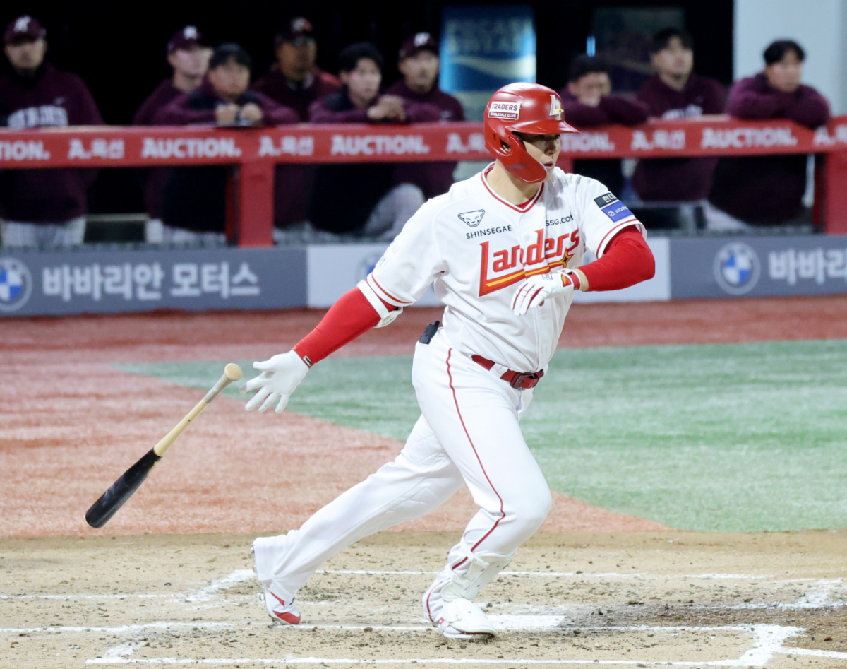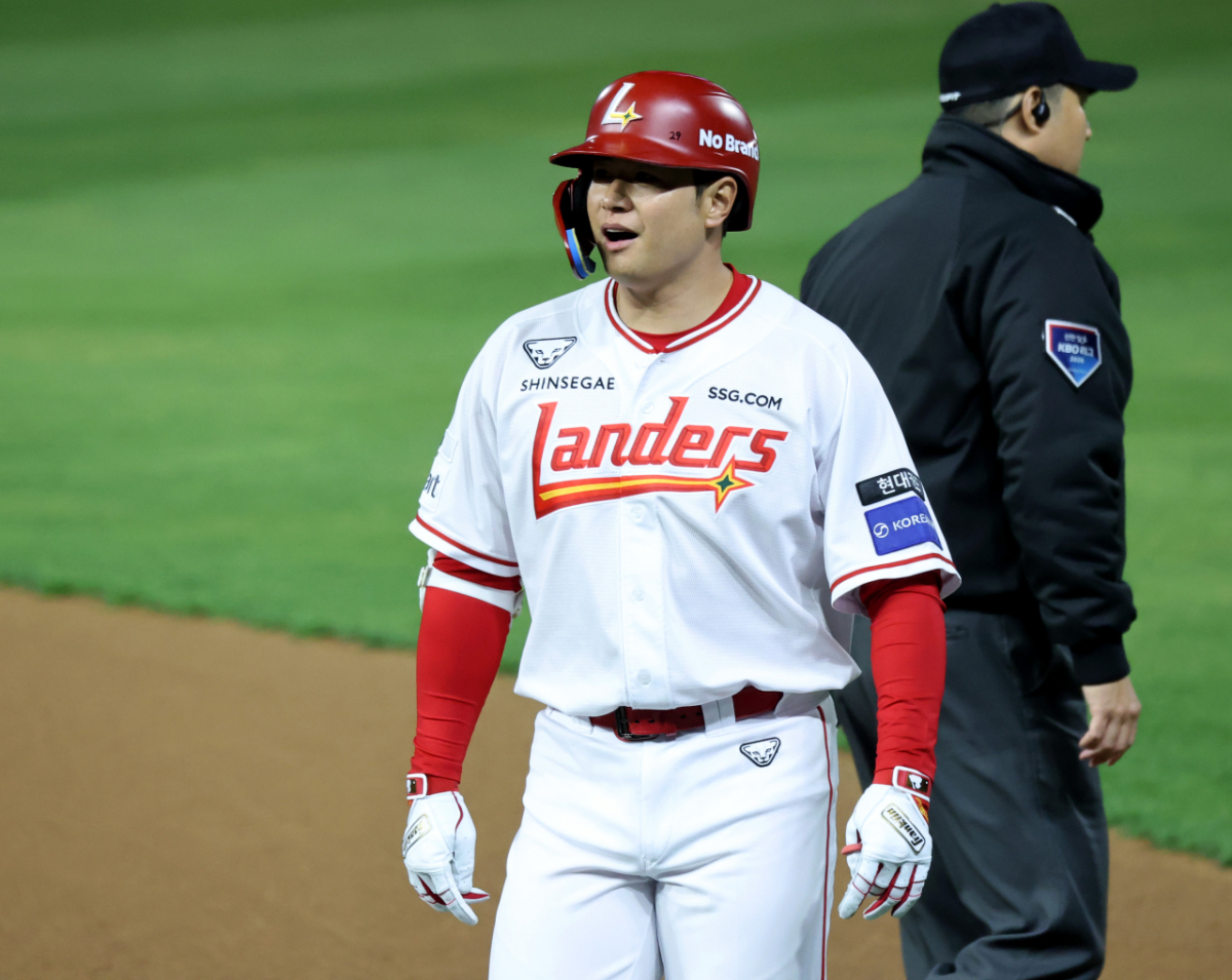 랜더스 4번타자 김재환이 31일 인천SSG랜더스필드에서 열리는 2026 프로야구 SSG랜더스와 키움히어로즈의 경기 4회말 내야땅볼로 물러나고 있다. 2026.03.31.