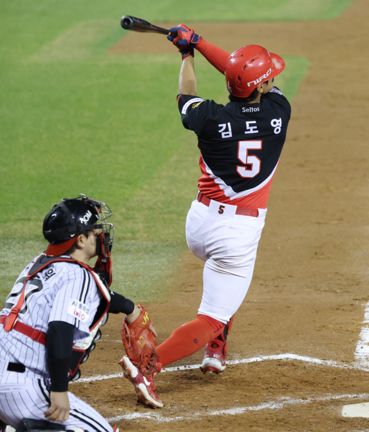 KIA 김도영이 4회초 무사에서 호쾌한 타격을 하고 있다.