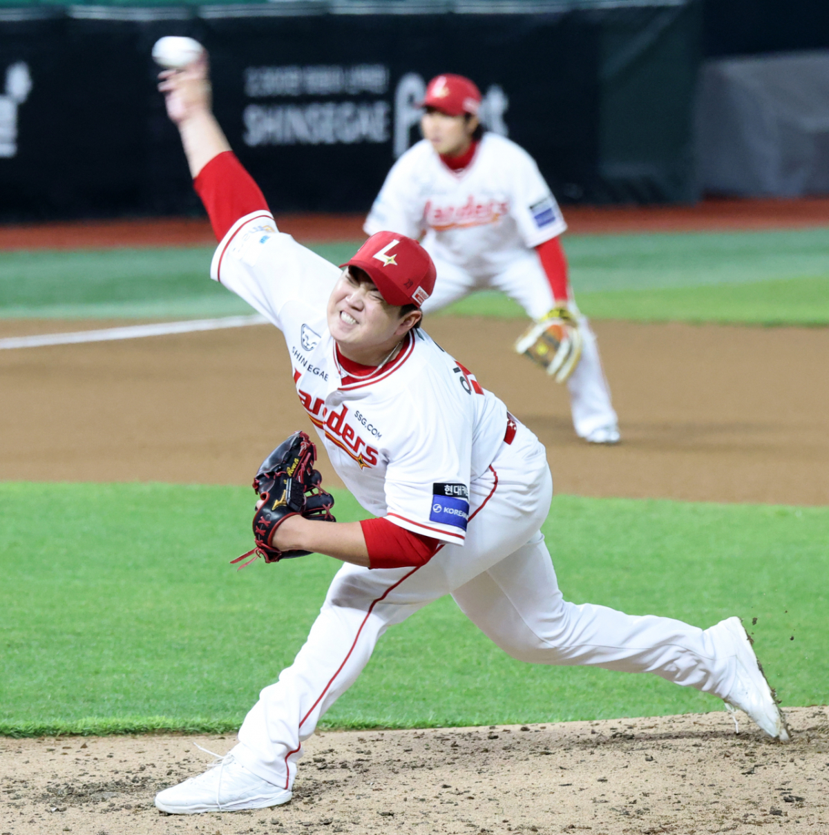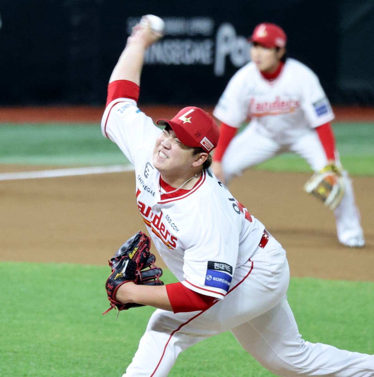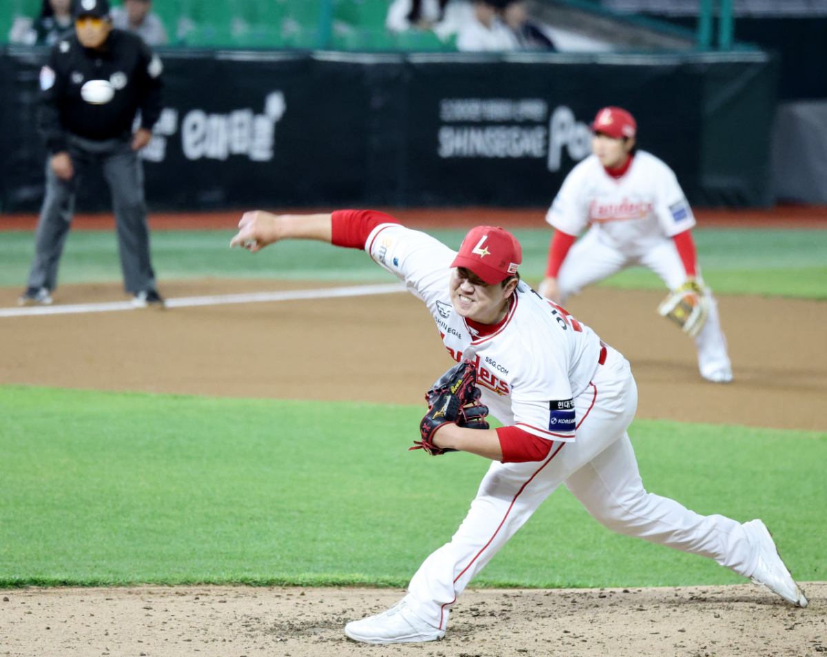랜더스 우완불펜 이로운이 31일 인천SSG랜더스필드에서 열리는 2026 프로야구 SSG랜더스와 키움히어로즈의 경기 6회초 위기에 등판해 역투하고 있다. 2026.03.31.