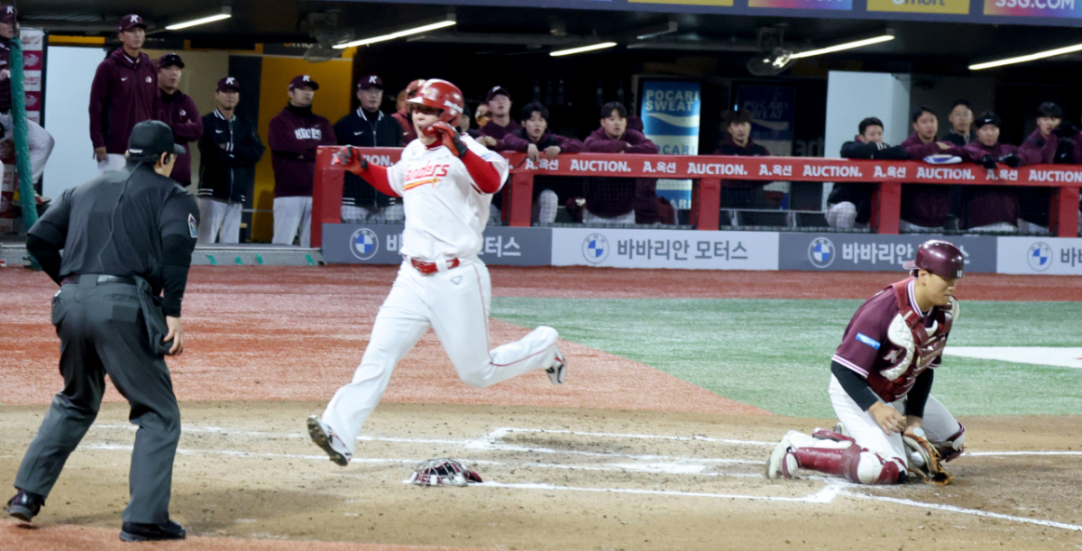 31일 인천SSG랜더스필드에서 열린 2026 프로야구 SSG랜더스와 키움히어로즈의 경기 6회말 2사 2루 상황이 발생했다. 랜더스 6번타자 한유섬이 키움 2루수 실책으로 출루했다. 키움 수비가 머뭇거리는 사이 2루주자 최정은 홈까지 파고들어 역전득점에 성공했다.