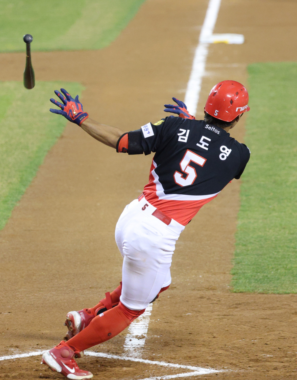 KIA 김도영이 6회초 무사에서 좌월 2루타를 날리고 있다.