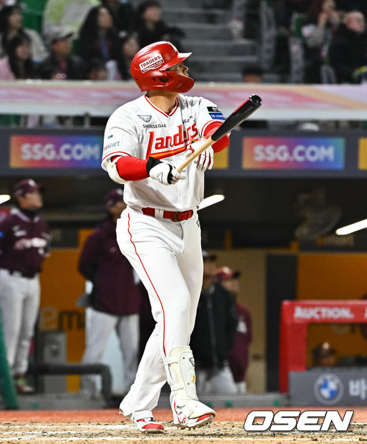 [OSEN=인천, 길준영 기자] 프로야구 SSG 랜더스 김재환(38)이 이적 후 첫 안타를 홈런으로 장식했다.