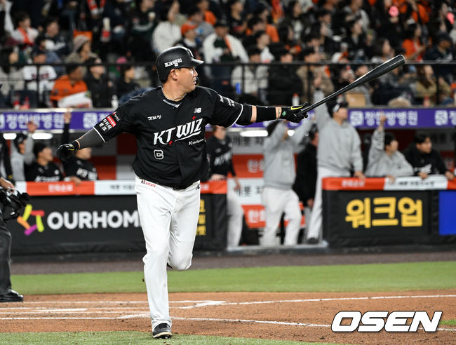 6회초 1사 1,2루에서 KT 장성우가 잘맞은 타구를 바라보고 있다. 이 타구는 한화 좌익수 문현빈에게 잡혔다. 2026.03.31 /[email protected]