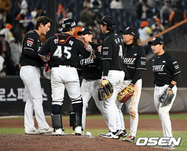 경기 종료 후 KT 선수들이 승리의 기쁨을 나누고 있다. 2026.03.31 /[email protected]