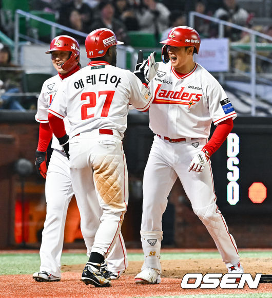 SSG 이숭용 감독은 “공수주서 발휘된 선수들의 높은 집중력이 역전승의 발판이 됐다. 3회 에레디아의 호수비와 4회 홈런으로 쫓아가는 점수를 만들었고 (김)재환이의 쐐기포가 주효했다. 앞으로도 재환이는 계속 좋아질 것이다”라고 승리 소감을 전했다.