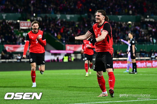 오스트리아는 4-2-3-1 포메이션으로 맞섰다. 마르코 아르나우토비치가 최전방에 자리했고 마르셀 자비처-크리스토 바움가르트너-파트릭 비머가 공격 2선에 섰다. 크사버 슐라거-파울 바너가 중원을 맡았고 필리프 음웨네-필리프 린하르트-마르코 프리들-콘라트 라이머가 포백을 꾸렸다. 골키퍼 장갑은 파트릭 펜츠가 꼈다.