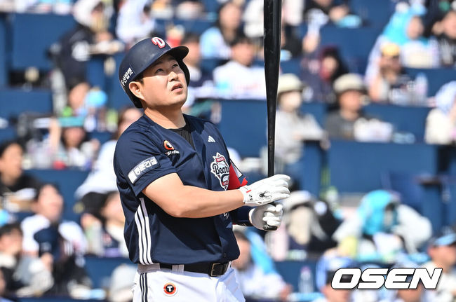 김도영은 헛스윙 2번에 1사 만루 기회 놓쳤다고 난리인데 두산 베어스 포수 양의지는 14타수 무안타로 침묵 중이다. 지난달 28일 NC 다이노스와의 정규 시즌 개막전에서 4회 무사 2루 찬스에서 중견수 뜬공으로 물러나는 등 3타수 무안타에 그쳤다. 두산도 0-6으로 고개를 떨궜다.