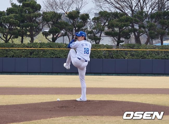 [OSEN=경산, 손찬익 기자] 오른쪽 팔꿈치 굴곡근 통증으로 잠시 쉼표를 찍은 ‘푸른 피의 에이스’ 원태인(삼성 라이온즈 투수)이 첫 라이브 BP를 소화했다. 라이브 BP는 실전 형식의 투구로 타자를 세워놓고 던진다. 재활 과정에서 아주 중요한 단계다.