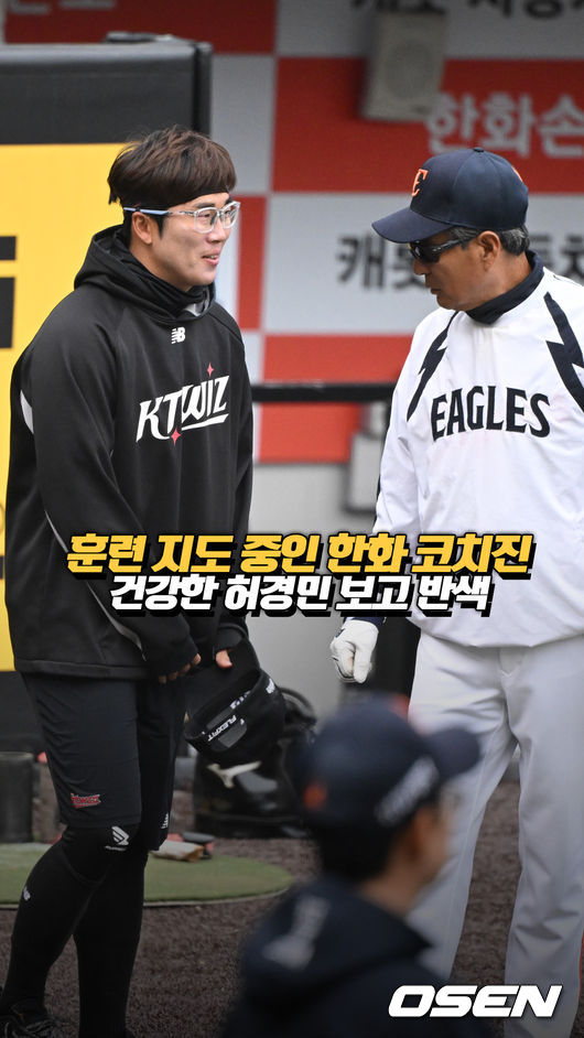 2026 신한 SOL KBO리그 한화 이글스와 KT 위즈의 경기가 대전 한화생명볼파크에서 열렸다. 전날 경기에서 헤드샷을 맞고 교체되었던 KT 허경민이 한화 코치진을 찾아 건강한 모습으로 인사했다. 이에 훈련을 지도하던 한화 코치진은 반색하며 허경민의 안부를 묻고 격려했다.