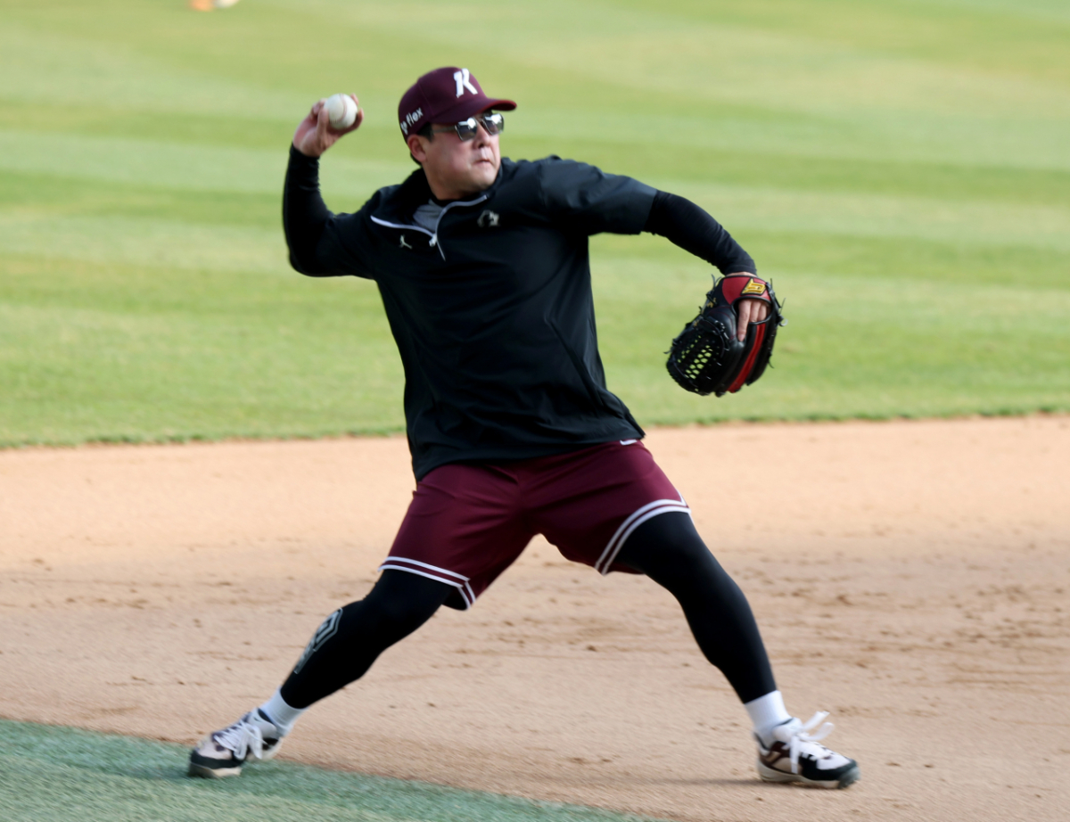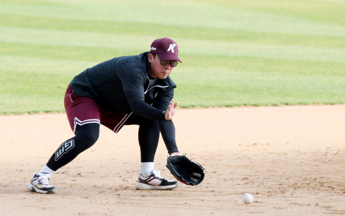 키움 안치홍이 1일 인천SSG랜더스필드에서 열리는 2026 프로야구 SSG랜더스와 키움히어로즈의 경기를 앞두고 3루 수비훈련을 하고 있다. 2026.04.01.