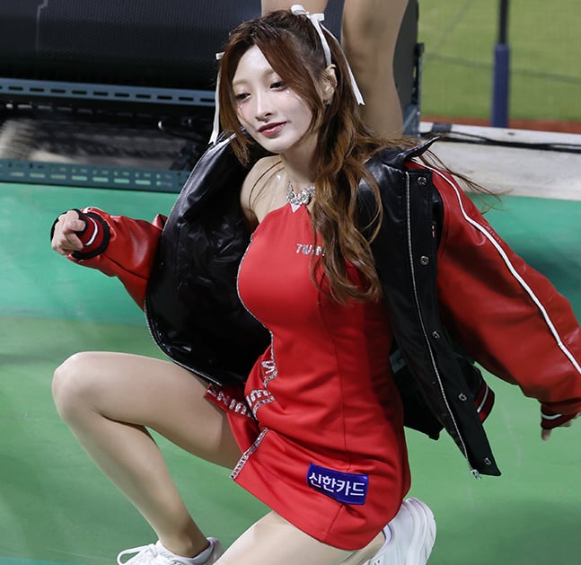 2026 신한 SOL Bank KBO리그 LG 트윈스 대 KIA 타이거즈 경기가 1일 서울 잠실야구장에서 열렸다. LG 치어리더 장로나가 상큼한 응원을 했다. 장로나가 '심멎 상의 탈의' 응원을 선보였다.