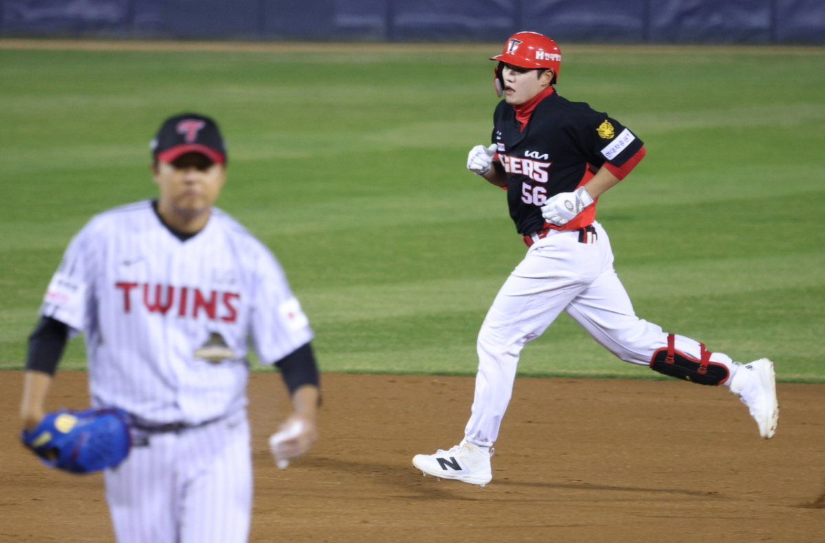 2026 신한 SOL Bank KBO리그 LG 트윈스와 KIA 타이거즈의 경기가 1일 서울 잠실야구장에서 열렸다. KIA 오선우는 5회초 무사 상황에서 LG 선발 송승기를 상대로 우월 1점 홈런을 기록했다. 오선우는 홈런을 날린 후 홈으로 들어왔다.