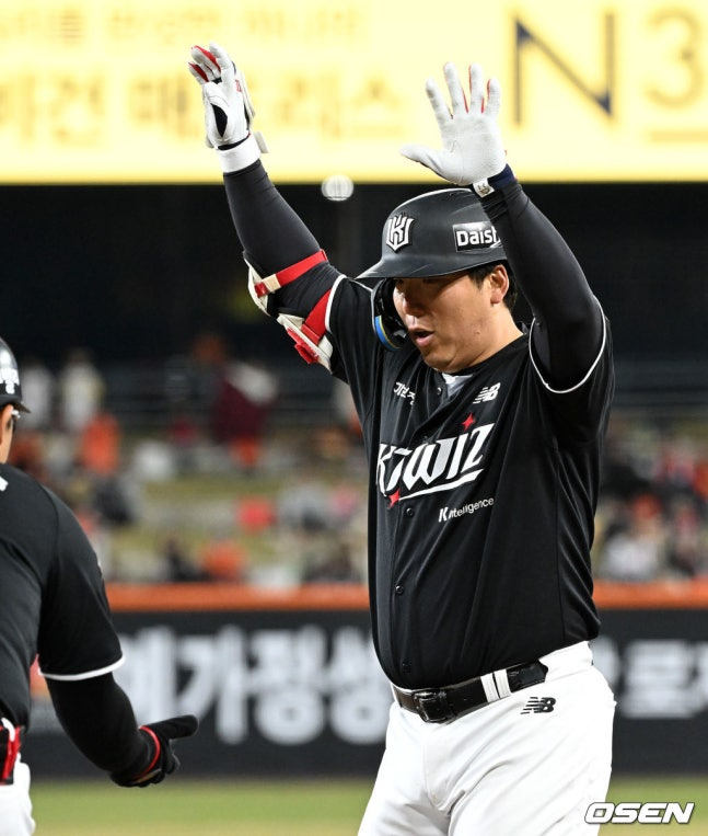 한화는 박상원을 구원한 정우주가 대타 류현인 타석 때 폭투에 이어 볼넷을 허용해 2사 만루에 몰렸다. 여기서 KT의 새 테이블 세터인 1번 최원준의 2타점 역전 중전안타, 그리고 2번 김현수의 1타점 우중간 안타가 연달아 터졌다.