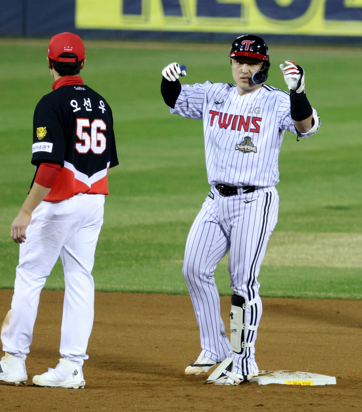2026 신한 SOL Bank KBO리그 LG 트윈스와 KIA 타이거즈의 경기가 1일 서울 잠실야구장에서 열렸다. LG 박동원은 8회말 2사 2,3루 상황에서 주자일소 2타점 적시 2루타를 기록했다. 박동원은 출루 후 세리머니를 펼쳤다. 2026 신한 SOL Bank KBO리그 LG 트윈스 대 KIA 타이거즈 경기가 1일 서울 잠실야구장에서 열렸다. LG 박동원이 8회말 2사 2,3루에서 주자일소 2타점 적시 2루타를 날리고 출루한 후 세리머니를 하고 있다. 독자들의 PICK! '아들 불륜' 조갑경 예능 출연에 전며느리 분노..."난 고통 속에 사는데" 의사 남편 외도 봐줬더니 또…"상간녀 위자료도 대신 내" '은퇴' 조진웅, 말레이시아 목격담…4개월 만에 알려진 근황 "총각인 줄 알고 결혼" 빚더미 남편, 전처·자식 숨겼다...아내 충격