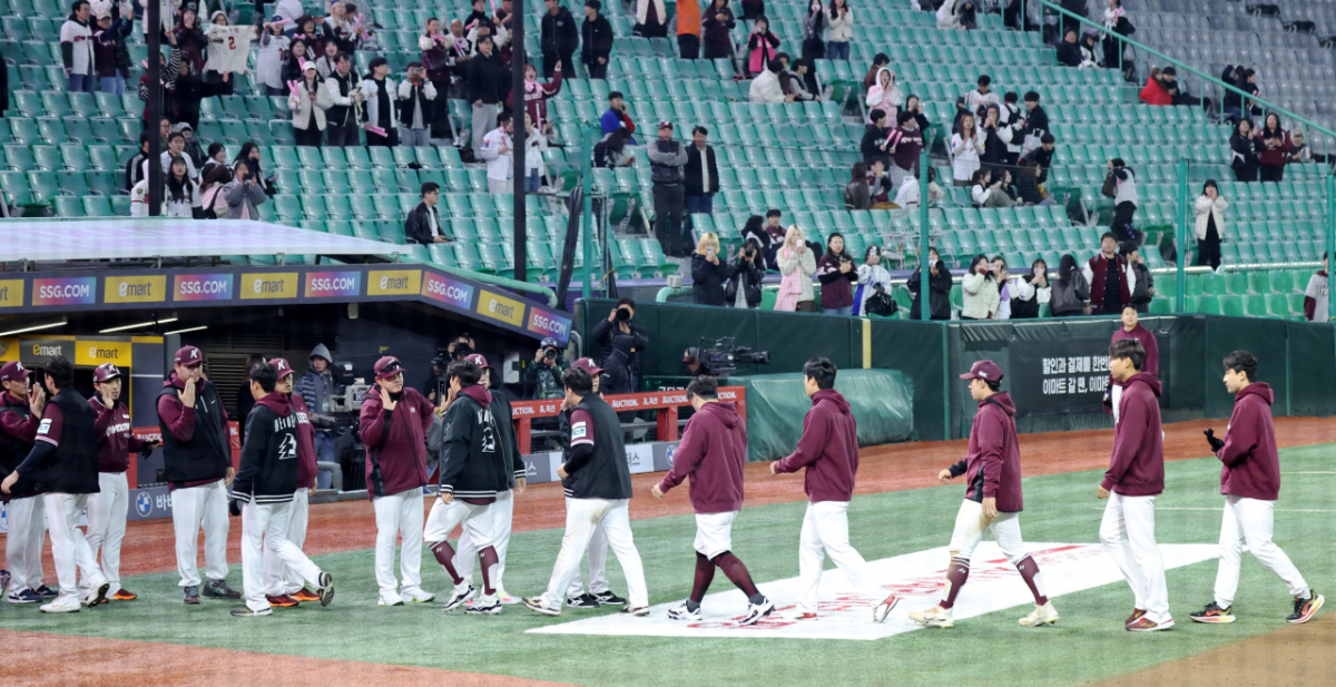 키움 히어로즈 선수들이 1일 인천SSG랜더스필드에서 열린 2026 프로야구 SSG랜더스와의 경기에서 승리했다. 이들은 승리 후 자축하는 모습을 보였다. 키움 히어로즈는 2026시즌 첫 승을 신고했다. 키움히어로즈 선수들이 1일 인천SSG랜더스필드에서 열리는 2026 프로야구 SSG랜더스와 키움히어로즈의 경기에서 승리한 뒤 자축하고 있다. 2026.04.01. 독자들의 PICK! '아들 불륜' 조갑경 예능 출연에 전며느리 분노..."난 고통 속에 사는데" 의사 남편 외도 봐줬더니 또…"상간녀 위자료도 대신 내" '은퇴' 조진웅, 말레이시아 목격담…4개월 만에 알려진 근황 "총각인 줄 알고 결혼" 빚더미 남편, 전처·자식 숨겼다...아내 충격