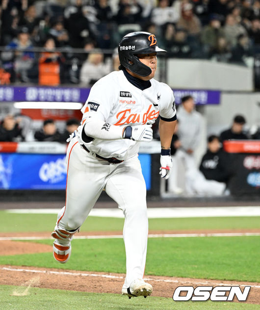 8회말 1사 1,2루에서 한화 강백호가 우중간 적시타를 치고 그라운드를 달리고 있다. 2026.04.01 /[email protected]
