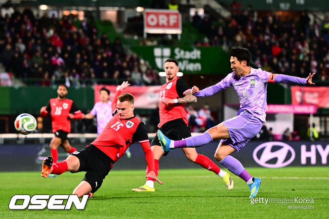 2분 뒤에는 더 결정적이었다. 이강인의 침투 패스를 받아 골키퍼와 일대일로 맞섰다. 과거의 손흥민이라면 가장 믿을 수 있었던 상황이다. 손흥민은 왼발로 마무리했지만, 오스트리아 골키퍼 파트릭 펜츠 선방에 막혔다.
