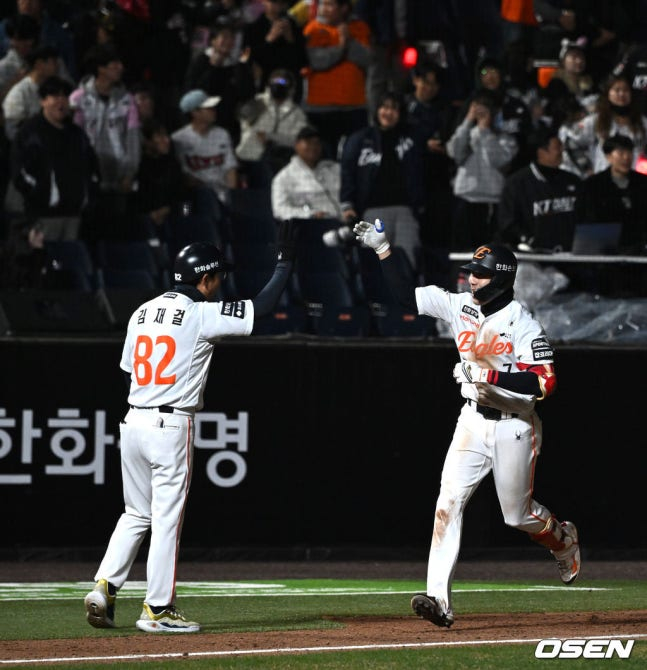 개인 기록에서도 각 부문 상위권에 한화 타자들이 대거 랭크돼 있다. 타점에서 심우준과 강백호가 각각 9개와 8개로 1, 2위를 달리고, 안타는 오재원과 페라자가 공동 1위(8개)에 올라 있다.