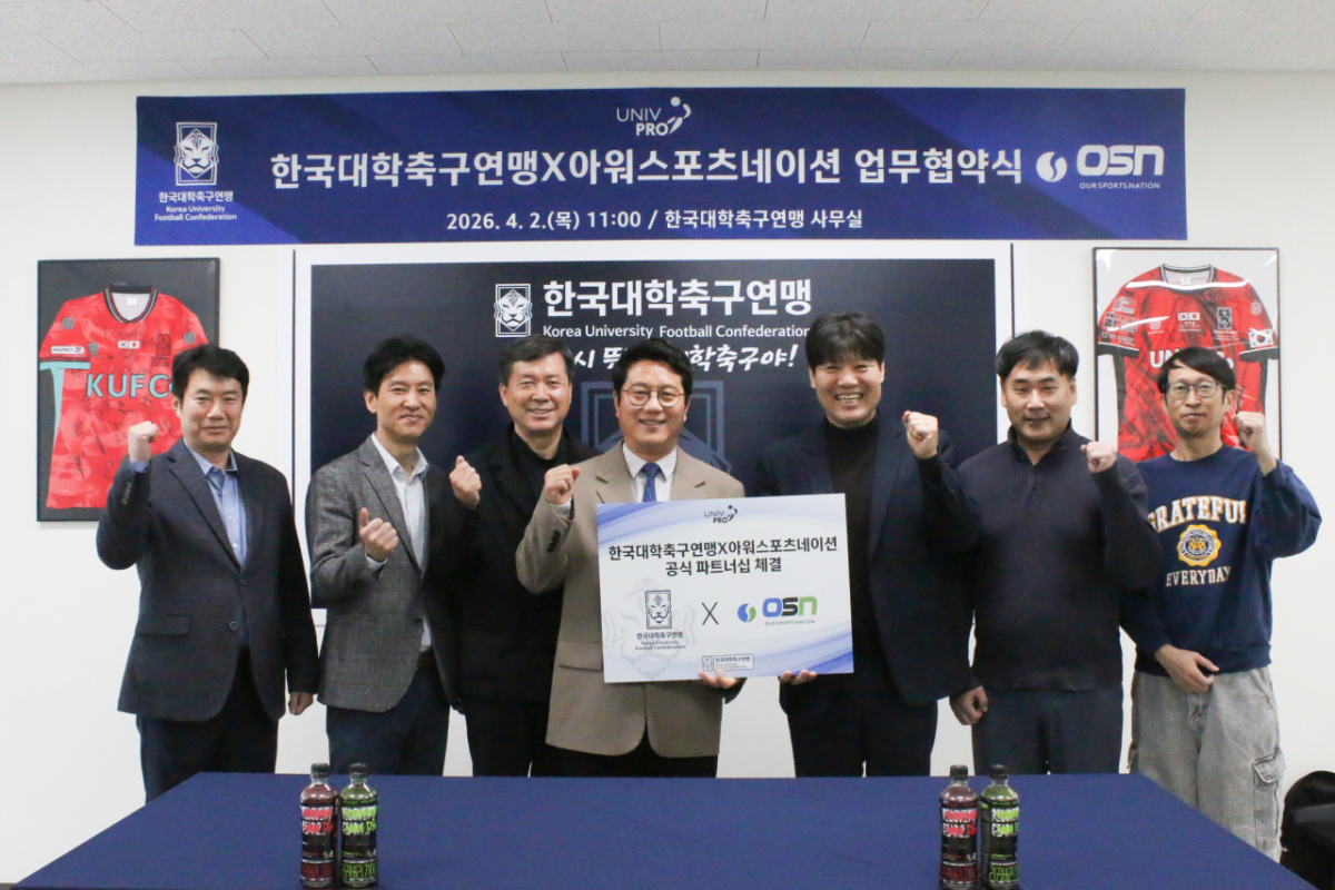 한국대학축구연맹은 2일 보도자료를 통해 금일 오전 11시, 주식회사 아워스포츠네이션과 대학축구 통합 플랫폼 구축 및 운영을 위한 업무협약(MOU)을 체결했다고 밝혔다.