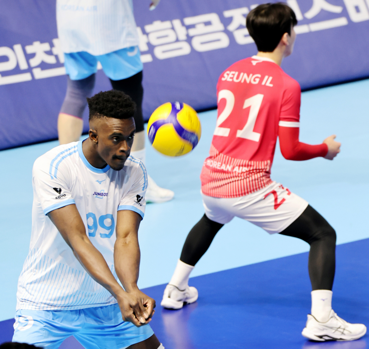 대한항공 외국인선수 호세 마쏘가 3일 계양체육관에서 열린 진에어 2025-2026 V리그 챔피언결정전 대한항공과 현대캐피탈 경기에 앞서 코트에서 몸을 풀고 있다. 2026.04.03.